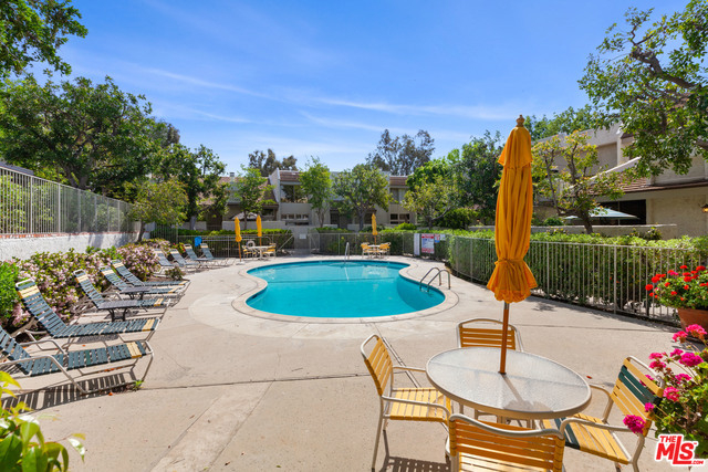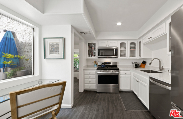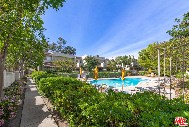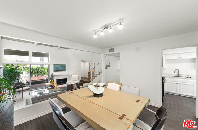 Welcome home to serenity in the heart of Studio City. This stunning townhome, custom upgraded in 2018, is in popular Studio Village. Seller needs to relocate for work. The living room has a corner fireplace and soaring vaulted ceiling with glass doors accessing a private enclosed patio. A beautiful light filters through an atrium, home to multi-level fountain & potted plants, off dining area and kitchen. The kitchen has quartz counters, stainless steel appliances and custom cabinetry w/ extra space for a breakfast nook or desk. The upstairs hall and bedrooms also have a vu of the atrium. Two skylights brighten the upstairs. The master suite has custom closets and custom tiled walk-in shower with a bench. This verdant resort-style complex has 6 pools, 2 tennis courts, 5 spas and ample guest parking. Complex is VA approved.