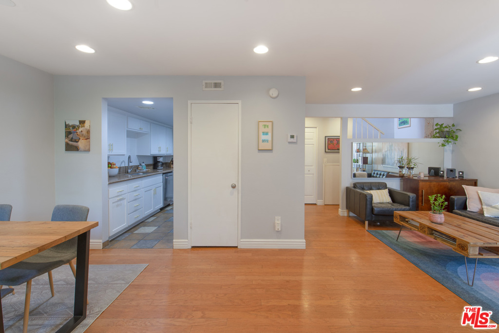 Updated 2 bedroom, 1 1/2 bath townhome located in the desirable Studio Village community. Great living room with a gas fireplace, bar area and access to the large private patio. Living room and dining area both have hardwood floors and recessed lighting. Kitchen has newer cabinets with stainless steel appliances, granite countertops, slate floors, and a pantry. Bright primary suite with beam ceilings, a walk-in closet, double sink, and a skylight. Spacious second bedroom has great closet space. Unit comes with a washer/dryer, two side-by-side gated parking spaces, and is in a quiet location away from the street. Studio Village includes 6 pools, 5 spas, 2 tennis courts, a clubhouse, lots of guest parking, and is dog friendly. HOA fees include earthquake insurance, Spectrum cable & internet, security patrol, and water. This is a perfect starter home located in the coveted Carpenter Community Charter School. Close to Ventura Blvd., Farmer's Market, Trader Joe's, Fryman hiking trails, and parks.