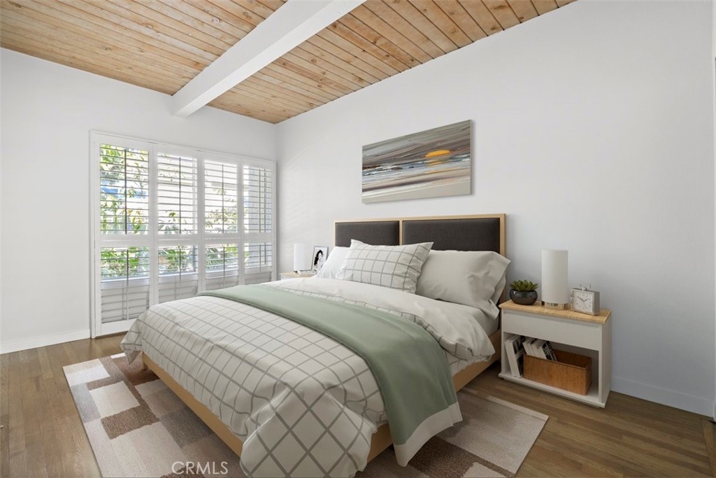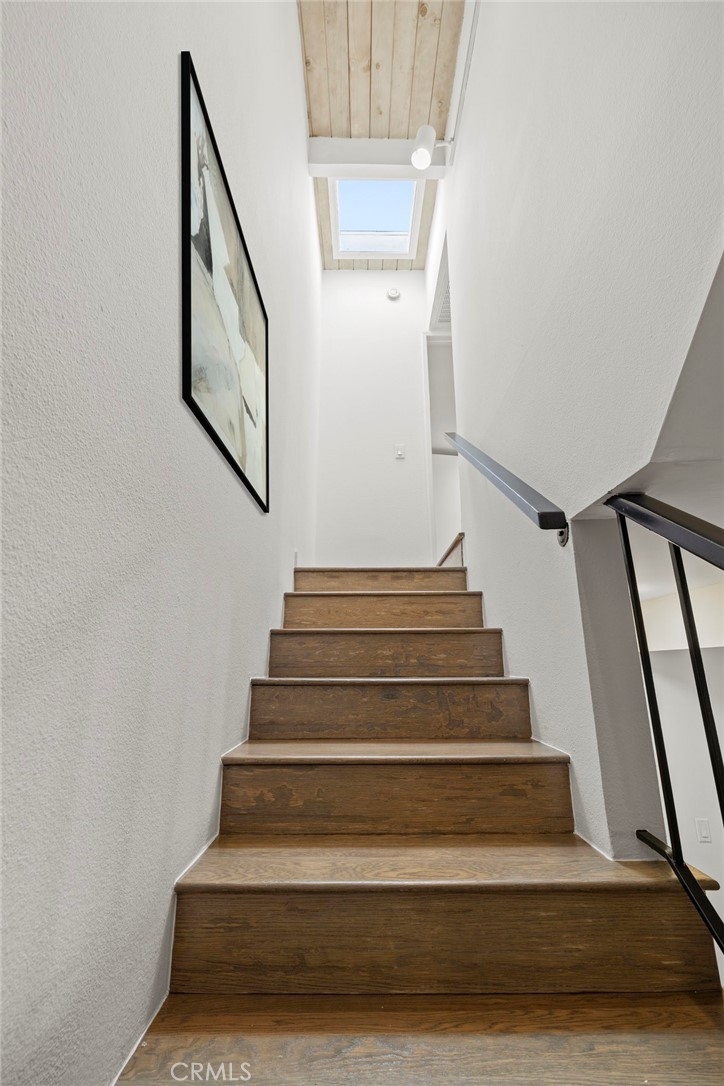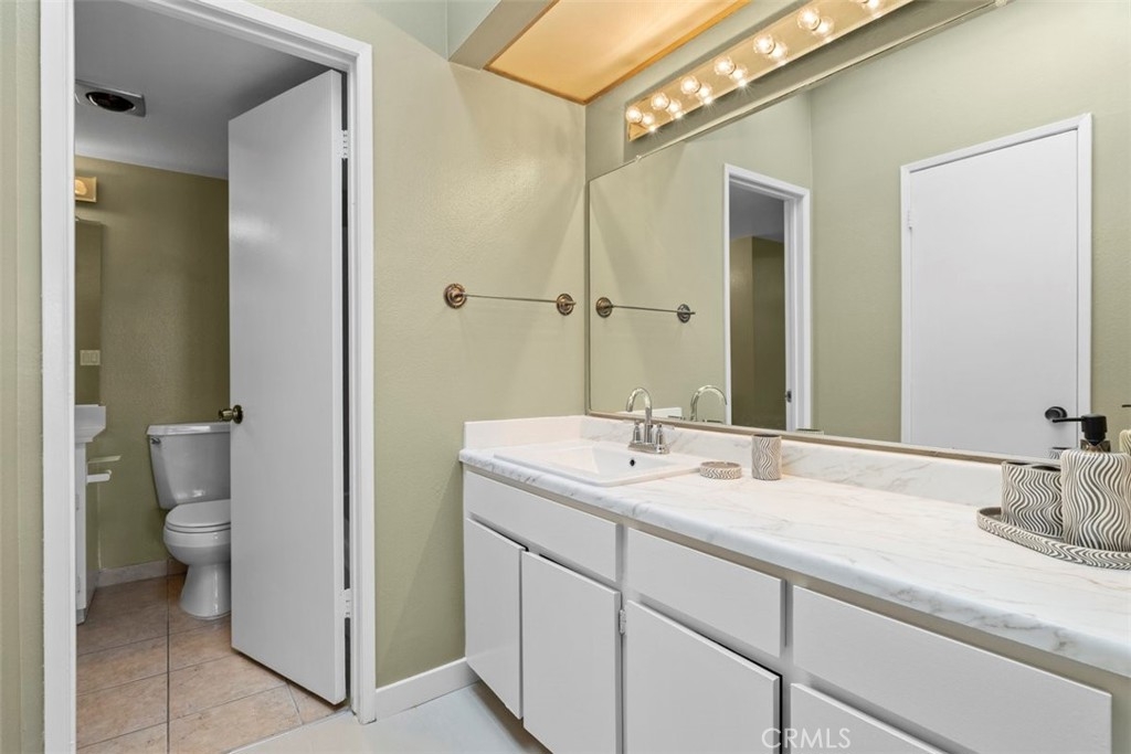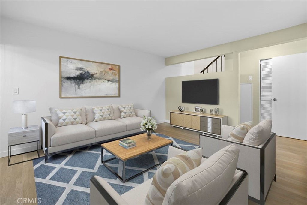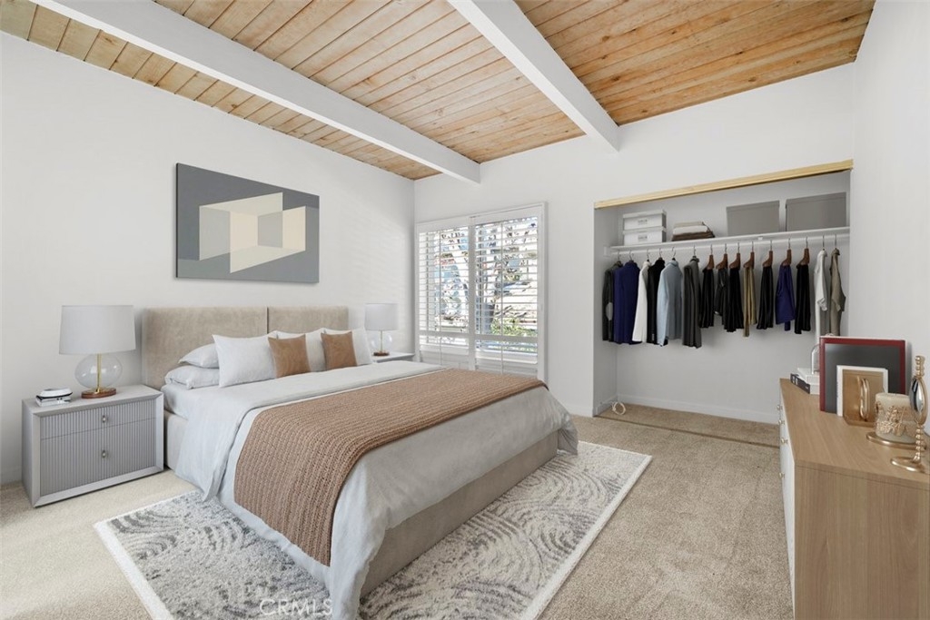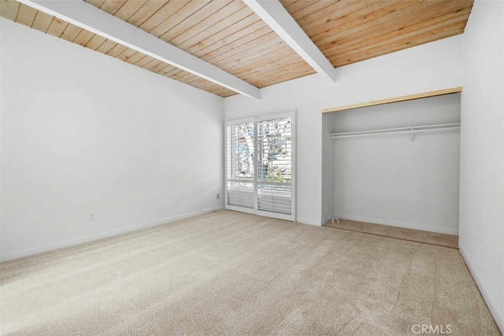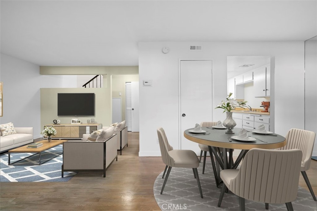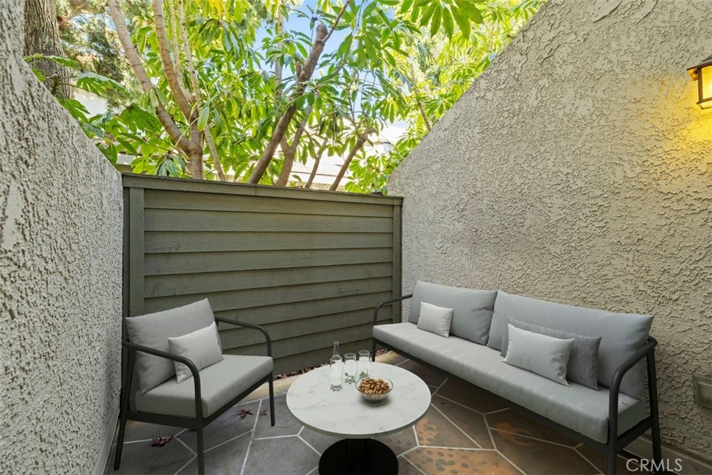 Nestled in the heart of the coveted Studio Village Complex, away from the traffic of Moorpark itself, sits this charming two-bedroom, 1.5-bathroom, townhouse-style condo. A delightful patio entrance greets you as you enter the main level, featuring a cozy living room with a fireplace, wet bar, dining area, and a conveniently situated half bath. A large walled-in patio off the living area makes this an ideal space for entertaining. The kitchen has newly installed ceramic floor tiles and lighting with ample counter and cabinet space. The two bedrooms boast exposed wood beams and paneled ceilings with large picture windows upstairs. The primary ensuite bedroom boasts new plush carpeting, an in-bedroom closet, an additional walk-in closet, a private dressing area, and a single-sink vanity with a skylight. The main bathroom area is shared between the two bedrooms, but separate sink areas are provided for each. The monthly HOA fee includes earthquake insurance, homeowners' insurance covering the building structure, landscape maintenance, an onsite manager, security patrol, water, trash, basic Spectrum TV/internet, and full use of community amenities. These amenities include two tennis courts, six pools, five spas, and a community clubhouse. The unit includes two large, side-by-side, gated subterranean parking spaces, central A/C and heating, an in-unit stackable laundry, and a large under-stairs storage area. Located within the Carpenter Community Charter School district, this home is close to Tujunga Village, the Sunday Farmers Market, Moorpark and Woodbridge Parks, and Ventura Blvd shops and restaurants. Not far are the new shops at the Sportsman's Lodge featuring Erewhon, Equinox, and more. A great location and place to call home!
