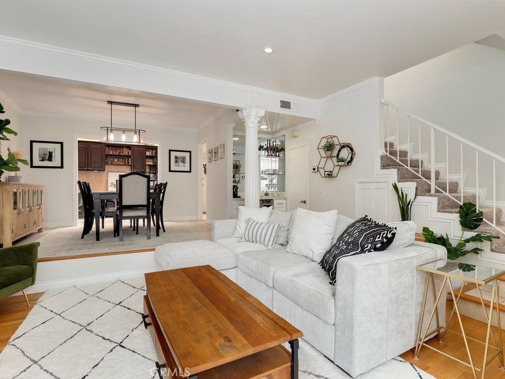 Fantastic Studio Village townhouse beautifully updated - open, bright and move in ready! Designer inspired touches throughout, including newer paint/fixtures & finishes. Incredible interior location within the complex, with no other units located in front or behind. Two bedroom suites, two & a half baths PLUS a bonus converted office/atrium area approved by HOA, perfect for those working from home. Over 1400 square feet of living space with two private outdoor spaces, including a huge, partially covered, 276 square foot deck off the upstairs junior suite, adding another indoor/outdoor living area! Wonderful first level floorplan with formal living room, hardwood floors and a fireplace that leads to a dining area flowing to the bonus room/atrium. Newly renovated kitchen with stone counter tops/marble herringbone backsplash, custom soft-close cabinets and stainless steel appliances. A private, front patio & new custom beverage bar round out the first level. Upstairs, the spacious master bedroom has a stunning pool view, features dual closets, crown molding, and leads to the grand ensuite bath. The generously sized secondary suite has it’s own walk in closet & full bath, and opens to the upper level patio/deck. Private, direct access garage with extra cabinets. Prime Studio City location, steps to Ventura/Tujunga Village. Carpenter School boundaries! Well managed HOA includes 6 pools, 5 spas, 2 tennis courts, EQ insurance, cable and more. Don’t miss this tremendous opportunity.