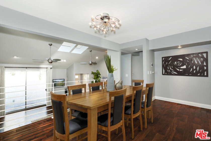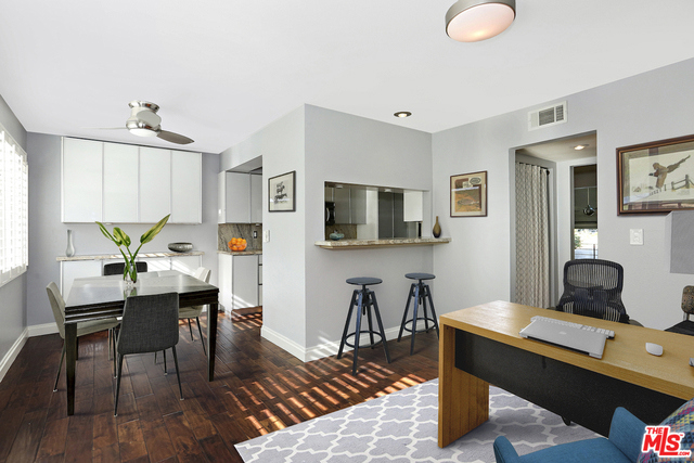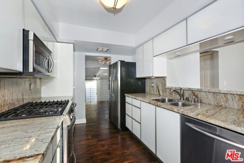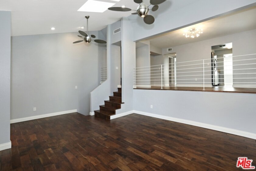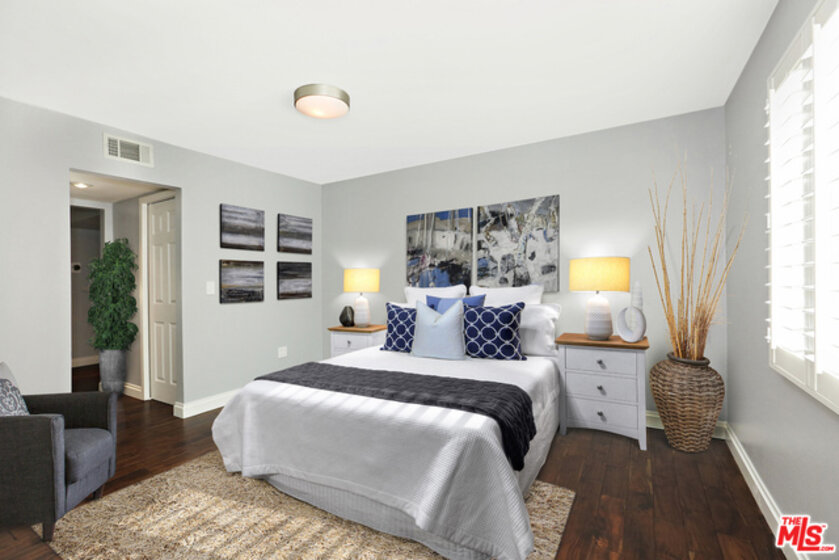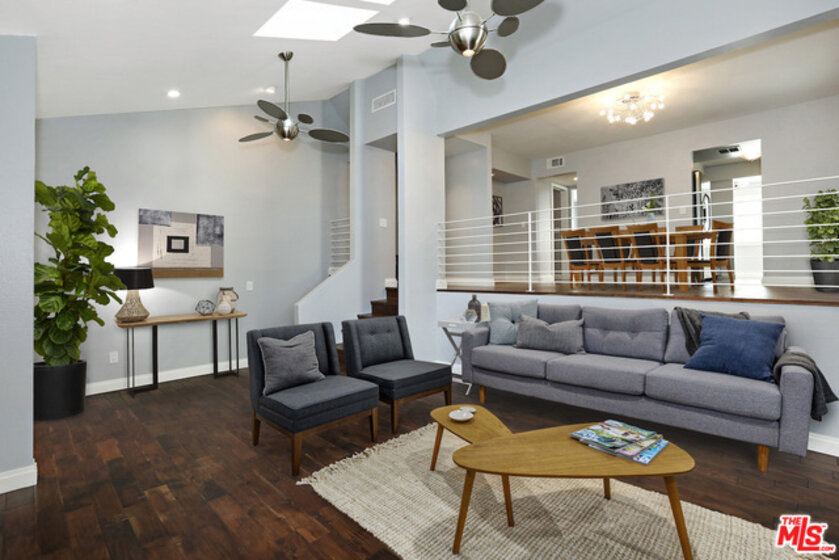 Prestigious Studio Village light, bright end unit townhouse with private oversize two car attached garage with direct access, 2 en-suite bedrooms, plus den or office, high ceiling with skylights, patio, private laundry, formal dining, and abundant storage. Beautifully renovated with high end finishes throughout including recessed lighting, walnut floors, granite kitchen with breakfast bar, custom glass fireplace, plantation shutters, double pane windows,tankless water heater and custom built out closets. Located close to major studios, Tujunga Village, transportation, parks, shopping, entertainment, farmers market, and minutes to the Westside.The HOA includes pools, spas, tennis, security, water, cable, extensive guest parking and EQ Insurance. This home is immaculate and ready to move in. Located in coveted Carpenter Charter Elementary area subject to availability.