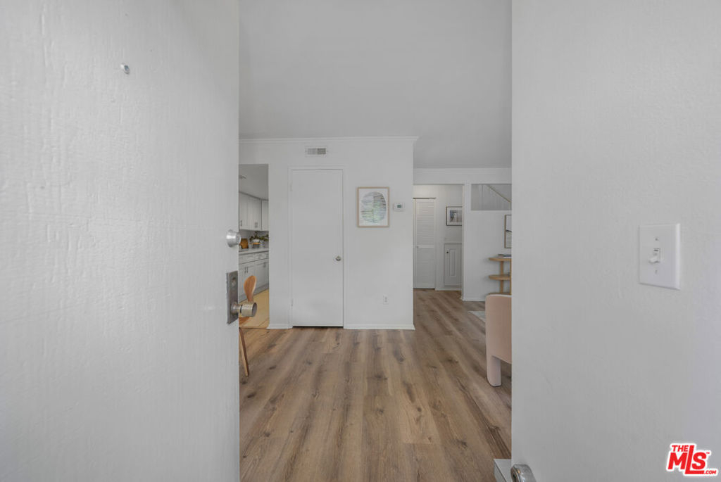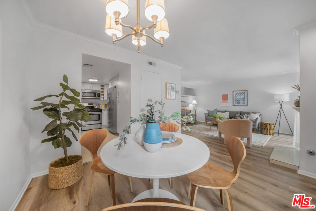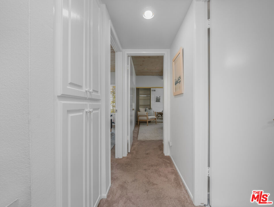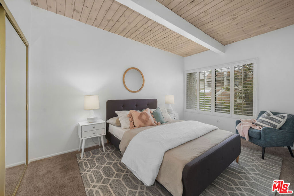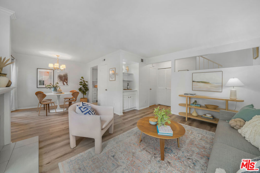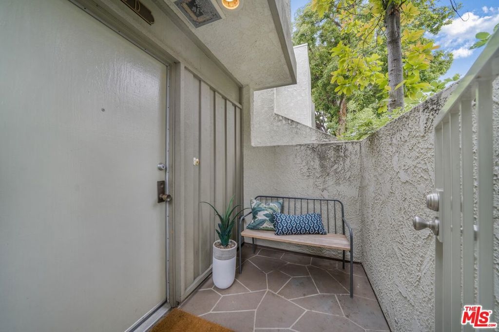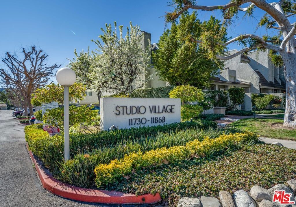 Nestled in the heart of the coveted Studio Village Complex, this stunning two-bedroom, 1.5-bathroom, townhouse-style condo is as charming as they come. A delightful, gated patio greets you as you enter the main level, featuring a cozy living room with a fireplace. Opening to the largest of three private outdoor spaces, the main level seamlessly flows into the dining area and hosts a conveniently-situated half bath, making it an ideal space for entertaining. The kitchen is equipped with stainless steel appliances, stylish quartz countertops, and ample cabinet space. Upstairs, the two bedrooms boast eye-catching exposed wood beam and panel ceilings, plush carpeting, and abundant closet storage. The serene primary bedroom offers a treetop view and leads into a private dressing area, featuring a large single-sink vanity, walk-in closet, and skylight. The main bathroom area is shared between the two bedrooms but provides separate sink areas for each. The monthly HOA fee includes earthquake insurance, homeowners' insurance covering the building structure, landscape maintenance, an onsite manager, water, trash, Spectrum TV/internet, and full use of community amenities. These amenities include two tennis courts, six pools, five spas, and a community clubhouse. The unit includes two large, side-by-side, gated subterranean parking spaces, central A/C and heating, and in-unit stackable laundry. Located within the Carpenter Community Charter School district, this home is close to Tujunga Village, the Sunday Farmers Market, Woodbridge Park, and Ventura Blvd restaurants. It is also near various shops, cafes, and the new Shops at Sportsman's Lodge, featuring Erewhon, Equinox, and more. Don't miss this opportunity to call this place home!