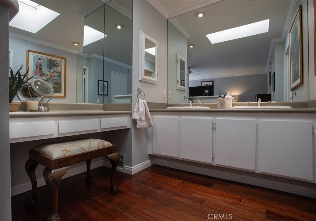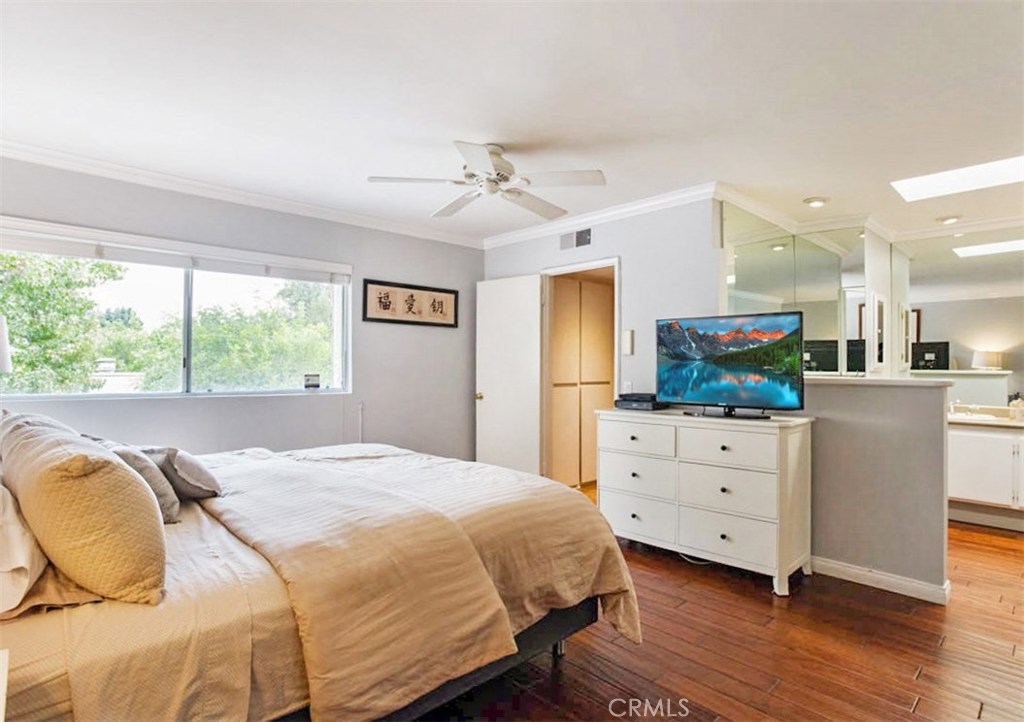 FALL IN LOVE with this light filled, end unit Studio Village townhouse. This stunning 2 bed / 2 bath / 1350 sq ft end unit has been tastefully updated throughout. The main floor boasts incredible natural light, gorgeous hardwood floors, impressive vaulted / beamed ceilings, fireplace, a spacious private patio and split level open concept formal dining room. This remodeled kitchen features stainless steel appliances, tasteful tile back-splash, eat in dining & abundant storage. A generous bedroom and gorgeous updated bathroom complete this floor. Upstairs, a true Primary Suite features consistent hardwood flooring, two large walk in closets, expansive bathroom vanity and updated en suite bathroom. An attached two car garage offers in unit laundry, tons of additional storage options & adj. guest parking. The beautifully maintained community grounds include six pools, five spas, two tennis courts & EQ insurance. Located in the coveted Carpenter Elementary school district, you're conveniently located walking distance to the shops and restaurants of Ventura Blvd, Tujunga Village and downtown Toluca Lake. Welcome Home.