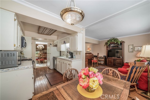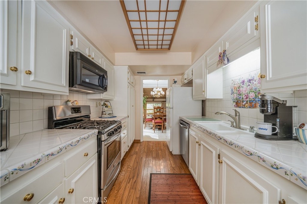 Welcome to this spacious tri-level, light-filled “End Unit” townhome, beautifully located within the highly sought-after Studio Village complex with a large greenbelt pool and spa very near the unit. A gated and walled, private brick garden patio serves as the entrance to a split-level floor plan, opening to a living room with soaring cathedral-beamed ceilings, a floor-to-ceiling south-facing window featuring gorgeous frosted stained-glass insets, a natural brick fireplace and hearth, and sliding doors leading to the private patio for BBQing and entertaining. The large dining area visible from the living room includes a wet bar with storage cabinets and connects to a bright galley kitchen featuring stainless steel appliances, custom tile countertops and backsplash, and a charming breakfast area connected to a family room/den (possible 3rd bedroom) with the addition of a wall, and an adjacent 3/4 guest bath and storage closet. Upstairs, two generously sized en-suite bedrooms feature large, screened picture windows, bathrooms, and walk-in closets. The primary bedroom features a fantastic window seat and an extra-large walk-in closet. A private direct-access two-car garage has two walls of built-in storage cabinets and a laundry area. The HOA includes earthquake insurance, on-site management, security patrol, landscape maintenance, cable TV/internet, water, and access to incredible amenities, including six heated pools, five spas, tennis & pickleball courts, and more. Located in the coveted Carpenter Community Charter School district and near Tujunga Village, Woodbridge Park, Ventura Blvds trendy shops, cafes, and the Sunday Farmers Market, this townhome truly is a rare find in a fantastic community.