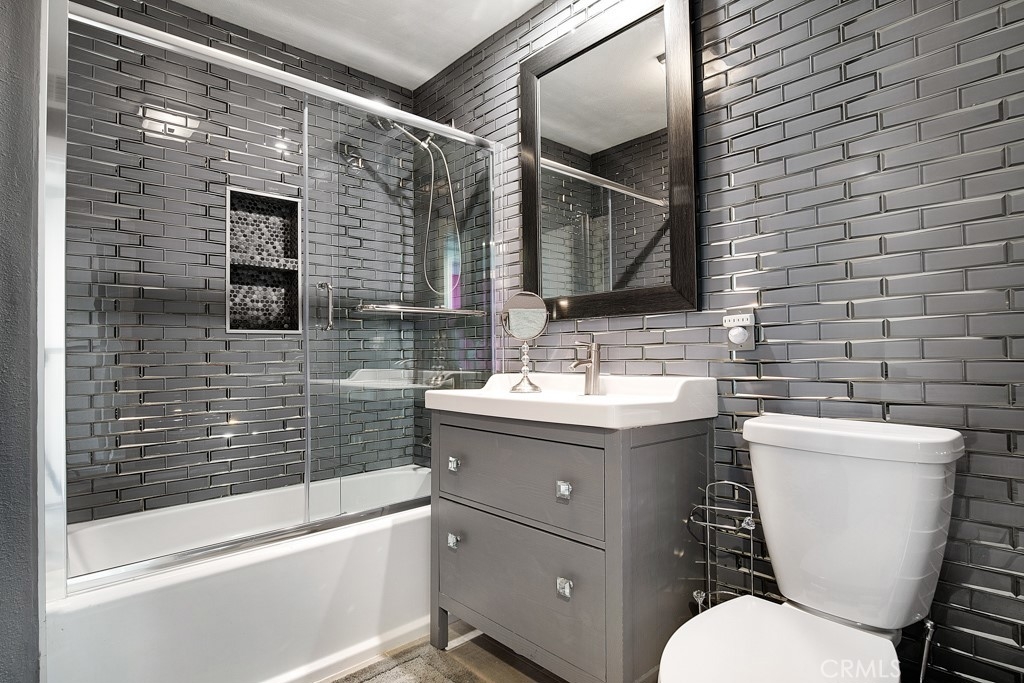 Presenting a lovely renovated townhome in Studio Village. Situated off the main street this home is surrounded by lush landscaping and trees. The living room has a dramatic vaulted ceiling with a skylight that illuminates the room. There is also a fireplace with floor to ceiling tile making it ideal for cool evenings. The living room has a sliding door that opens up to a private patio, and there is also an atrium next to the kitchen offering many options for enjoying outdoor living. The formal dining room features a beautiful contemporary glass chandelier next to the modern kitchen. This home is perfect for entertaining. There is a downstairs powder room. Upstairs you'll find two bedrooms and two bathrooms. The atrium opens to the bedrooms and hallway which brings in lots of natural light. The oversized primary bedroom offers a large closet and luxurious bathroom with a walk-in shower and dual vanities. You also have your own attached private garage with washer & dryer, and built in storage. Close to Carpenter Elementary, CBS Studios, and the wonderful shopping/dining at the Tujunga Village and Ventura Blvd. HOA dues INCLUDE cable TV, high speed internet, water and earthquake insurance. The complex has 6 pools, 5 spas, 2 tennis courts and guest parking.