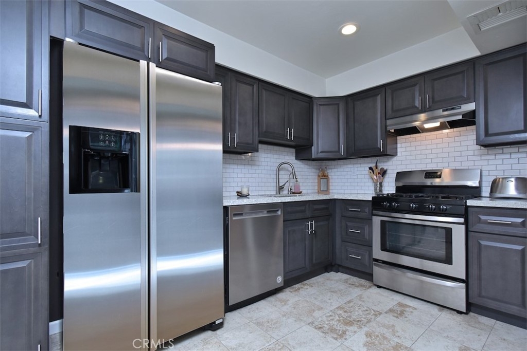 A very special move-in ready Studio Village townhome is being offered for your viewing pleasure & offers. There is so much to say about this quality unit. It not only features a charming front patio, but an additional terra-cotta tiled atrium for relaxation, play or your green thumb artistry. Upon entering you are greeted by the high tongue-n-groove beamed ceiling & a charming unique glass fireplace plus a great new custom wet bar. The flooring throughout is the highest quality polished maple laminate. A terrific dining room is visually pleasing for casual or formal gatherings. The adjacent kitchen is totally remodeled with excellent tastes and includes stained maple cabinets, quartz counters & mini subway tile backsplash, along with a newer range & dishwasher. The baths have all been updated in a very tasteful fashion. The primary bedroom suite is voluminous & features not only a huge slider closet but a great walk-in one. The 2nd bedroom is also well sized & has wonderful closet space as well. There are new skylights in the primary bath & the hallway. Additional features are updated plumbing fixtures, sinks as well updated drain lines, recent Milguard dual paned windows throughout and 2 Milguard sliding doors, LED recessed lighting, new water heater, new roll-up garage door, new updated electrical panel and much more. Studio Village is close to Tujunga Village and Ventura Blvd's numerous shopping and dining destinations. You are also located in the coveted Carpenter Community Charter School District. HOA amenities include controlled access, lush grounds, 6 pools, 5 spas, 2 tennis courts and guest parking. HOA fees include cold city water, cable TV, internet service & patrolled security.