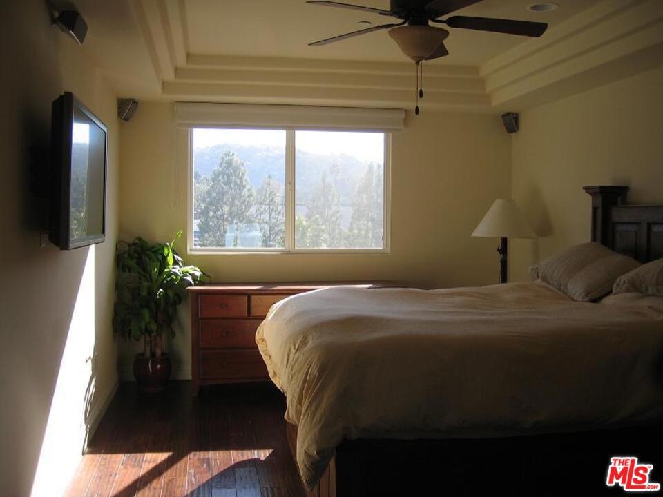 Rare opportunity to own (or Lease) a bright south-facing, corner penthouse with hillside views in one of the most desirable buildings in the best pocket of Studio City. Featuring high end finishes including Viking Range, granite countertops, all engineered hardwood floors (no carpet), stainless steel appliances, skylights, fireplace. Floor plan consists of a formal entry, split bedroom configuration for privacy, walk-in closet in the master bedroom. Long balcony with a view of the hills. The Mediterranean courtyard building is beautifully decorated and landscaped, and features a full gym and rooftop lounging area. Monthly HOA dues are $600 monthly which includes water. Earthquake insurance is assessed once per year depending on the premium so currently HOA dues come out to about $652 a month including earthquake insurance and water. Renter/Renters Agent or Buyer/Buyers Agent to verify square footage. Also available for rent at 5300/mo.