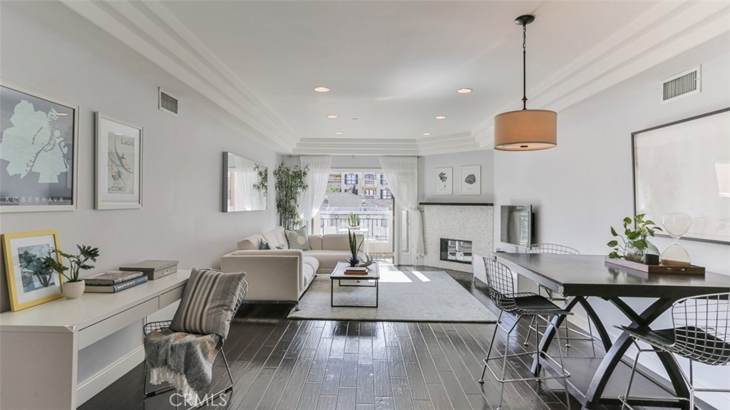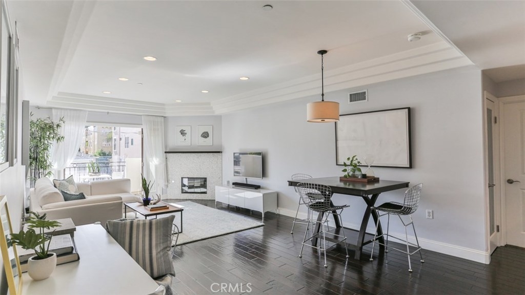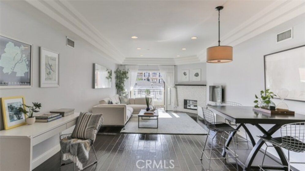 FALL IN LOVE with Studio City Living. This gorgeous southern facing 3 bedroom / 2.5 bathroom / 1560 sq ft condo features abundant natural light, tasteful design details, hardwood floors and recessed lighting throughout. A modern kitchen with stainless steel appliances overlooks this open concept living/dining room boasting soffit ceiling details, fireplace and private balcony to take in neighborhood and mountain views. A true master suite offers elegant upgrades including wainscoting and custom wallpaper, and a spacious en suite bathroom with a double vanity and oversized soaking tub. This home is complete with 2 additional guest bedrooms, a full bathroom, a powder bath, and in-unit stackable washer and dryer. This well-maintained building offers controlled access, a state of the art gym, and is in walking distance to the award-winning Carpenter charter school. Its central location will have you minutes from shops, restaurants and the weekly Studio City Farmers Market. Welcome Home.