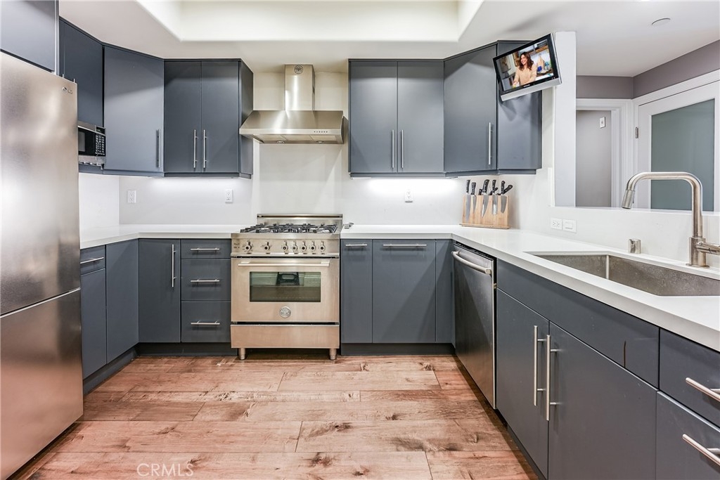 Located in the desirable Studio City, this large light, and bright condo is located moments from the popular Farmer's Market, Trader Joe's, and Ventura Blvd's trendy restaurants and shops. The updated unit features wood floors throughout, a kitchen with updated stainless steel appliances, and is adjacent to the kitchen and dining area perfect for entertaining. The master bedroom offers an ensuite bathroom and a large walk-in closet. Two additional bedrooms and bathrooms are all well sized with ample closet and storage space. The complex is secure and elegantly designed with well-maintained hallways, an elevator, a gym, and a parking garage with 2 tandem parking spaces.