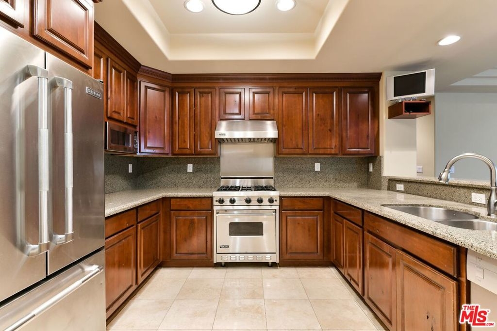 Live on one of the best streets in Studio City, a short two blocks from popular restaurants/shops on Ventura Boulevard. This spacious 3 bed/2.5 bath unit has a large private patio and features fine finishes, including natural stone floors and counter tops, engineered wood floors, triple soffited ceilings, cherry toned cabinetry and beautiful moldings, trims and door casings. Milgard patio doors and windows. Spacious kitchen with a beautiful stainless Viking range and stainless steel appliances, new in-unit washer/dryer, and an open floor plan. The building is Tuscan inspired and has a beautiful lush courtyard, furnished rooftop with spectacular views, and large gym with all the equipment one would need. Plenty of underground guest parking and street parking. Enjoy the Farmers Market every Sunday 2 blocks away offering organic produce, fresh flowers, rich soaps, artisan jewelry, face painting, and train rides for the children. Buyer/Buyers agent to verify exact square footage.
