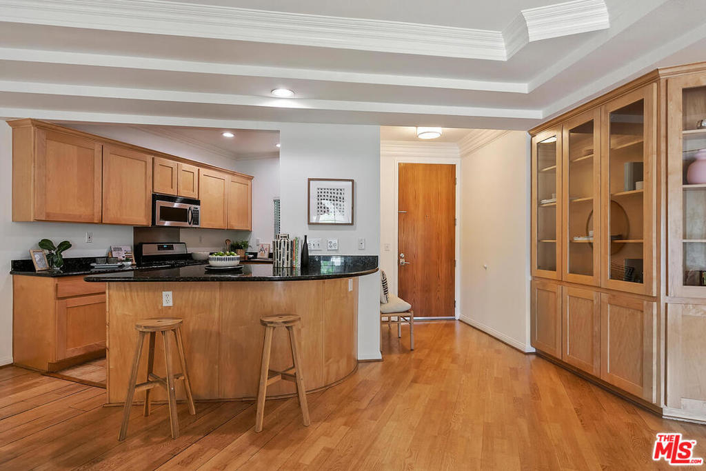 Designer sharp quiet, single level condo in iconic Studio City Spanish style building adjacent to Beeman Park in a spectacular residential neighborhood! Newly painted, gorgeously staged and freshly priced! Unit boasts spectacular open floor-plan with 2 generous sized bedrooms including primary en suite with massive walk-in closet. Beautiful lush greenery and views from every window. Spacious granite kitchen with stainless appliances, stone tile floor & breakfast bar flank the large dining area. Stately living room adjacent to inviting large family room with French doors and custom moldings. Stunning artistic details throughout. Beautiful wood shelving include an entry showcase cabinet and floor to ceiling bookshelves in the family room. Delightful grand balconies off living and dining room, perfect for al fresco dining, relaxing amongst the lush tropical landscaping and enjoying the sunshine with your morning coffee! Strong HOA includes EQ insurance, Spectrum premium cable & high-speed internet. Steps from coffee shops, restaurants and Ventura Blvd. Truly the best Studio City has to offer. Welcome home!