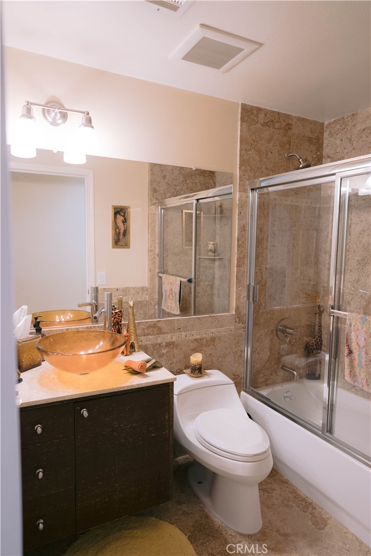 Live, Work, Play, Enjoy luxurious-resort-like living in this lovely single level Mediterranean condo! Sophisticated styling in a luxurious building with gorgeous courtyard fountain. Spacious, over 1500 Sqft light & bright 2BD+2BA+BONUS Conv. Den/Study with superb floor plan boasting high ceilings. Formal entry leading to an inviting living room, adjacent to elegant formal dining next to breakfast bar and a gourmet kitchen with maple cabinetry, granite counters & matching stainless appliances. Large master bedroom enhanced with a walk-in closet & en-suite bathroom fitted with a full glass shower stall, jacuzzi tub and double sink. Spend some quality time with friends and family, BBQ at the large private balcony along the unit with abundance of natural sunlight and wonderful cool cross breeze throughout the unit. Building is centrally located within a walking distance to Beeman Park. HOA includes exterior maintenance, landscaping, cable TV & internet, earthquake insurance, and water.