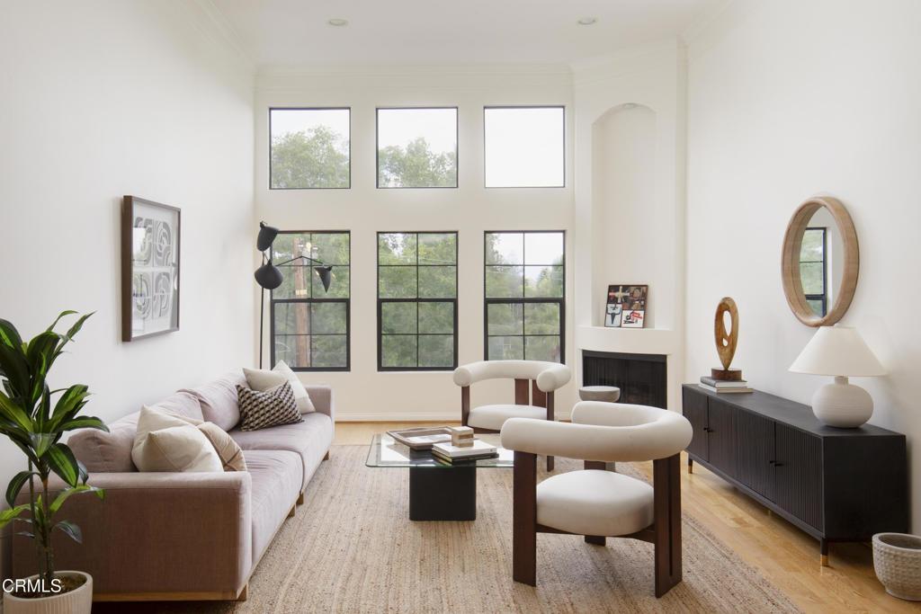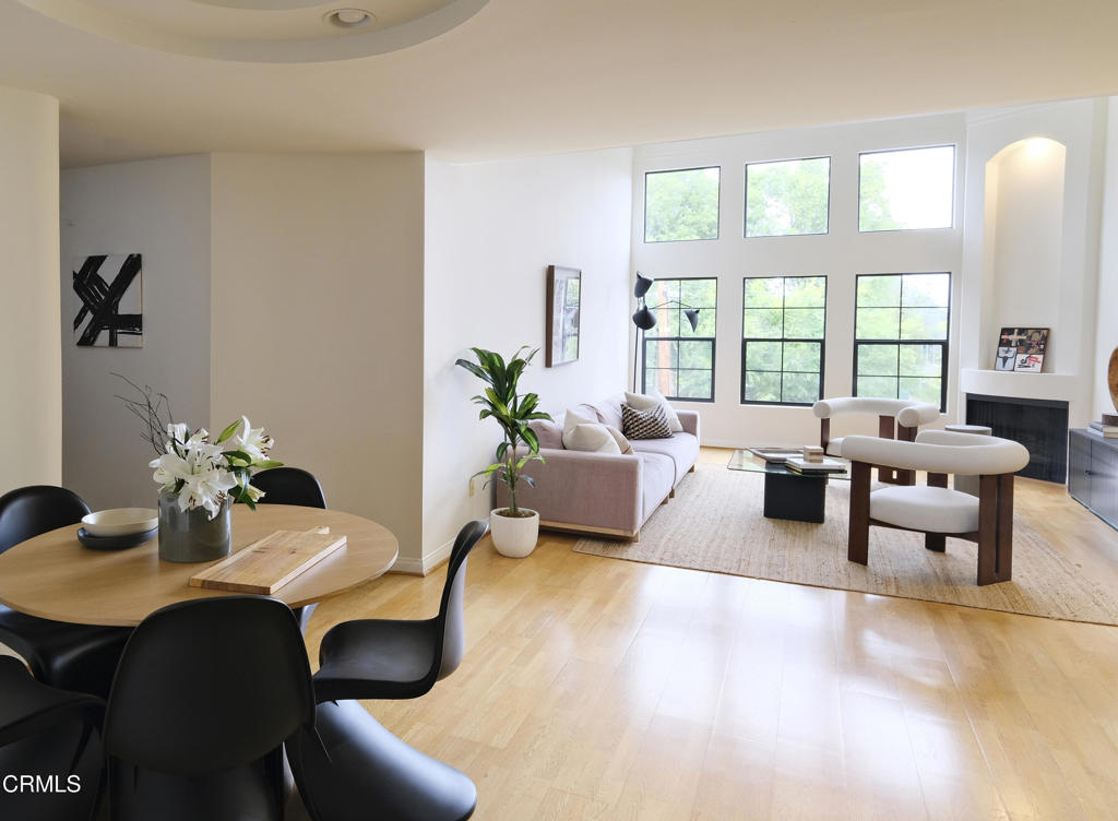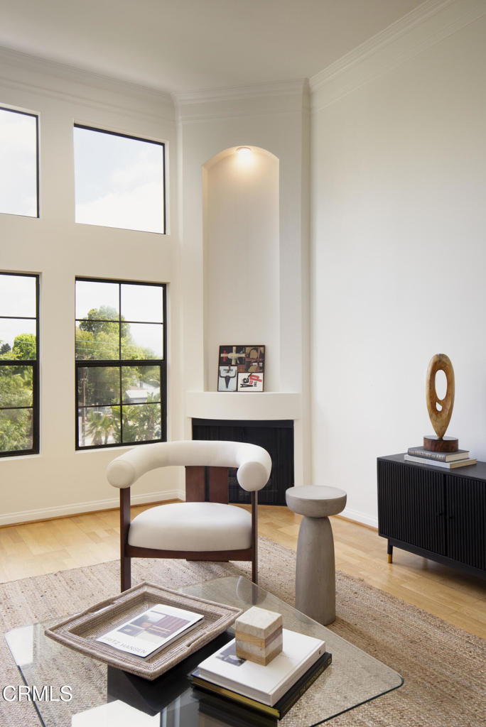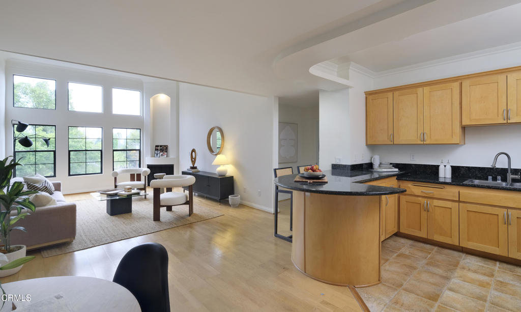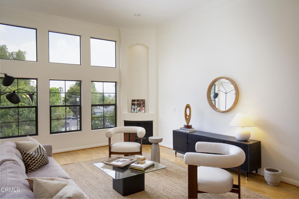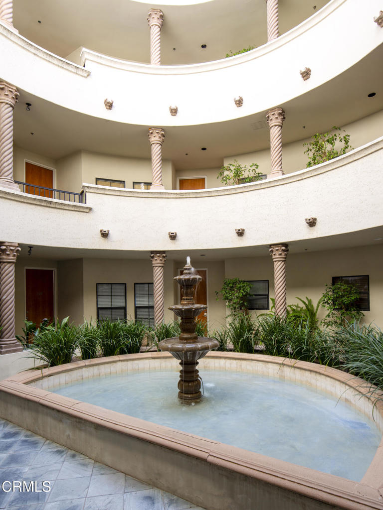 This charming Spanish-inspired building is centrally located in a prime area of Studio City. Centered around an atrium-style courtyard with a fountain set on a quiet street and surrounded by mature trees, this bright and airy old world inspired yet modernly appointed high-style top-floor 3 bedroom, 2 bath view property is situated adjacent to Beeman Park in a prime area near Ventura Boulevard's shops, restaurants, coffee houses, bars and cafes. Close to Erewhon, Equinox Gym, Studio City Library, and supermarkets, with easy access to major thoroughfares, freeways, private and public schools, and a beautifully landscaped section of the LA River Trail. The interior architecture features an abundance of modern curvilinear details including curved walls, and a stunning spiral staircase that leads to a private rooftop deck with views of the Valley, Hollywood Hills, the lights of Los Angeles, and the 4th of July fireworks! Unit 303 has high vaulted ceilings with walls of windows that reveal great views from the living room and 2 bedrooms. The unit has a spacious gourmet kitchen with stainless appliances, granite countertops and maple cabinetry. The kitchen has a new range/oven, new dishwasher, new garbage disposal and features an eat-in bar that opens to the living area area-perfect for entertaining. The unit features hardwood floors, a modern open floor plan, crown moldings, recessed lighting, LED lighting, a gas fireplace, abundant storage, walk-in closets an in-unit stacked washer/dryer, dual pane windows, and 2 tandem parking spaces in a security Garage. HOA includes earthquake insurance, property insurance for the full replacement value of the building, and Spectrum Cable with DVR and high-speed internet. A charming and well-appointed property on a quiet street yet in the heart of the best of what Studio City has to offer.