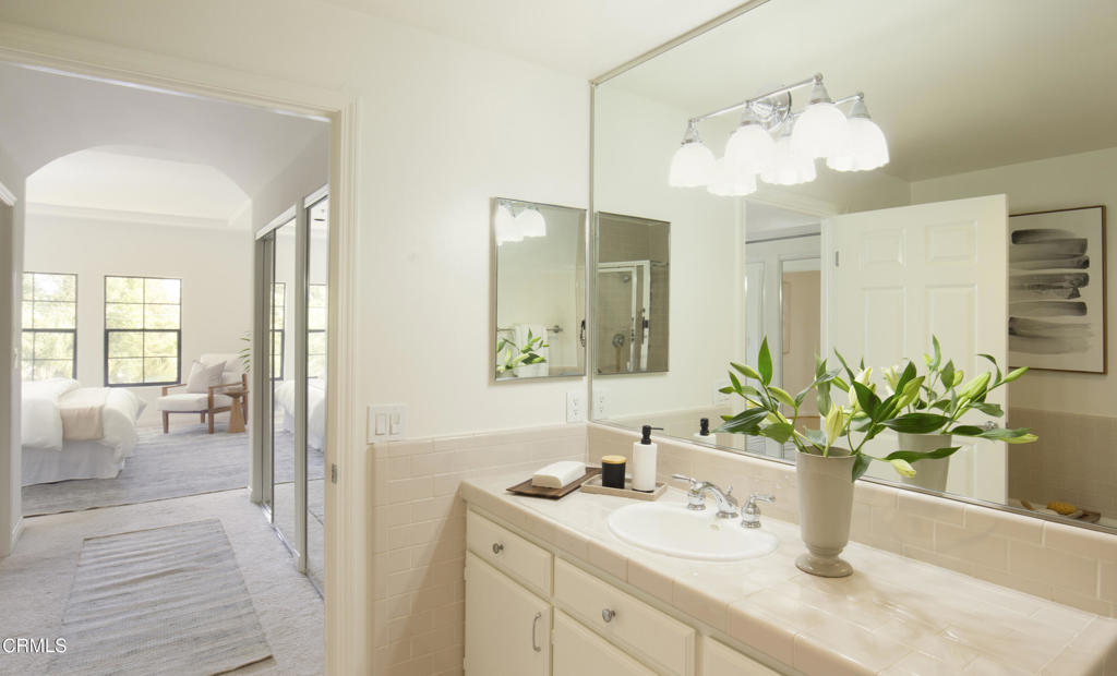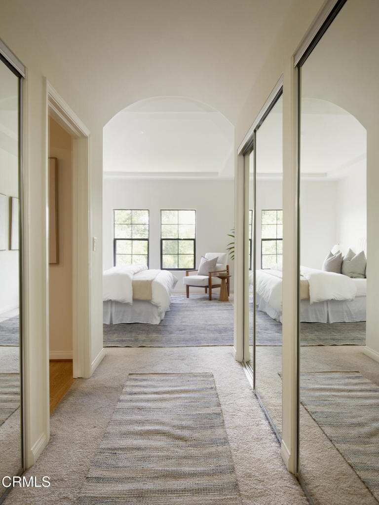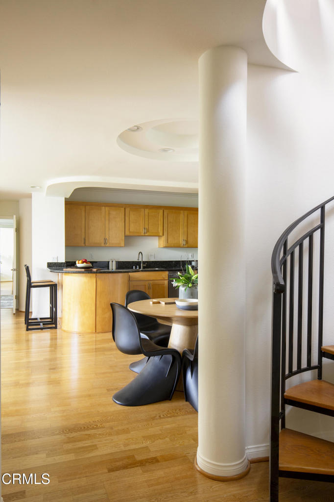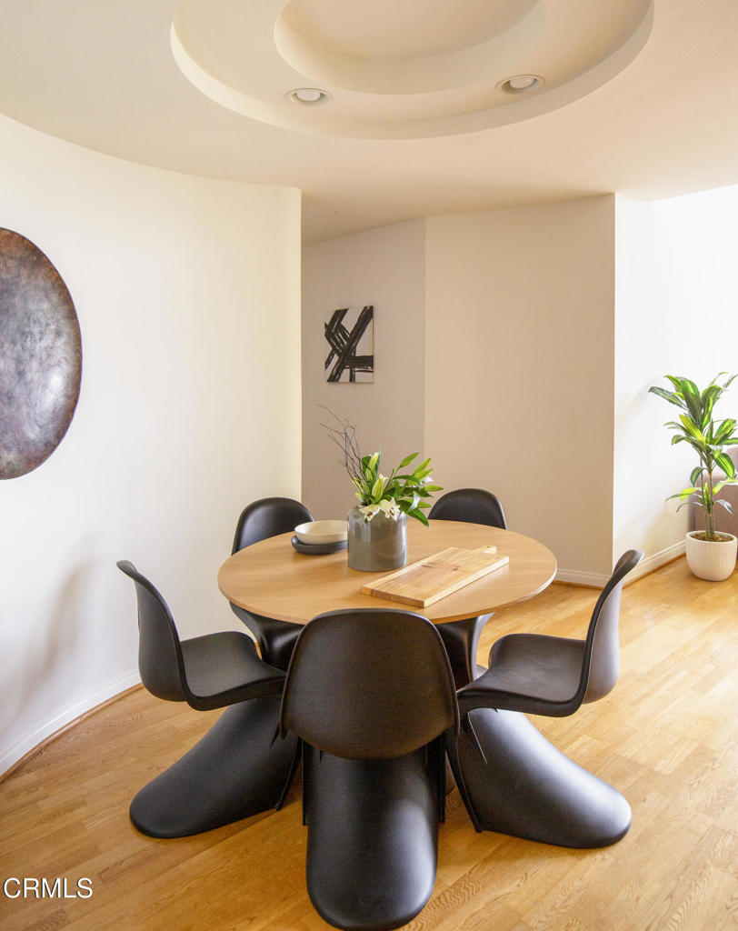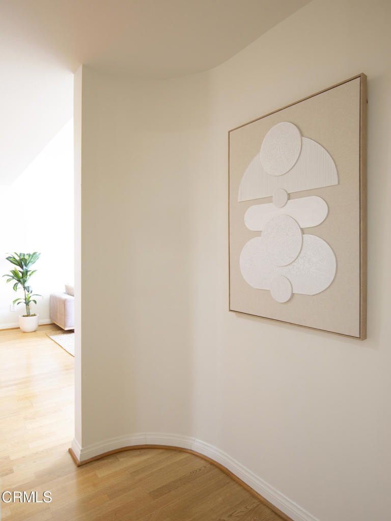 This charming Spanish-inspired building is centrally located in a prime area of Studio City. Centered around an atrium-style courtyard with a fountain set on a quiet street and surrounded by mature trees, this bright and airy old world inspired yet modernly appointed high-style top-floor 3 bedroom, 2 bath view property is situated adjacent to Beeman Park in a prime area near Ventura Boulevard's shops, restaurants, coffee houses, bars and cafes. Close to Erewhon, Equinox Gym, Studio City Library, and supermarkets, with easy access to major thoroughfares, freeways, private and public schools, and a beautifully landscaped section of the LA River Trail. The interior architecture features an abundance of modern curvilinear details including curved walls, and a stunning spiral staircase that leads to a private rooftop deck with views of the Valley, Hollywood Hills, the lights of Los Angeles, and the 4th of July fireworks! Unit 303 has high vaulted ceilings with walls of windows that reveal great views from the living room and 2 bedrooms. The unit has a spacious gourmet kitchen with stainless appliances, granite countertops and maple cabinetry. The kitchen has a new range/oven, new dishwasher, new garbage disposal and features an eat-in bar that opens to the living area area-perfect for entertaining. The unit features hardwood floors, a modern open floor plan, crown moldings, recessed lighting, LED lighting, a gas fireplace, abundant storage, walk-in closets an in-unit stacked washer/dryer, dual pane windows, and 2 tandem parking spaces in a security Garage. HOA includes earthquake insurance, property insurance for the full replacement value of the building, and Spectrum Cable with DVR and high-speed internet. A charming and well-appointed property on a quiet street yet in the heart of the best of what Studio City has to offer.