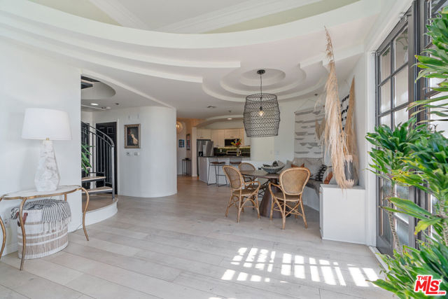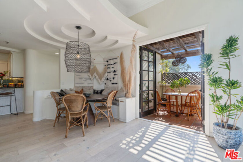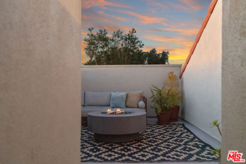 Offer deadline Mon., 9/22/25 at 5 PM. Sun-drenched Mediterranean Penthouse with sprawling private rooftop retreat. Peacefully tucked away in the top rear corner of a boutique Mediterranean building overlooking Beeman Park, this light-filled penthouse is a timeless ode to Spanish-style elegance. Architectural ceilings and ornamental finishes blend seamlessly with modern updates, creating a sanctuary that feels both warm and refined in the heart of convenient west Studio City. Inside, soaring 12-foot ceilings and a dramatic wall of windows bath the space in all-day natural light, elegantly framing sweeping views of the San Gabriel Mountains and mature treetops. Curved walls, double-stacked crown molding, and a cozy gas fireplace add warmth and character to the expansive living space, while a modern open-concept layout places bedrooms on opposite sides for optimal privacy. French doors open wide to a spacious terracotta-tiled patio with unobstructed western exposure, creating a seamless indoor-outdoor flow perfect for working from home, dining or unwinding at sunset. A dramatic spiral staircase leads directly to your own 2 oversized private rooftop deckstotaling over 500 square feet of versatile living spaceand offering stunning 360-degree panoramas of the Hollywood Hills, mountains and beyond. Whether hosting friends, stargazing over a fire pit, or simply enjoying golden-hour light, this space is a showstopper. Thoughtful upgrades include 7-inch wide-plank engineered hardwood floors throughout, built in dining banquet with hidden storage, fully replaced HVAC, newer stainless steel appliances, in-unit laundry, and a dedicated EV charger for your two tandem parking spaces. The building features breezy open air atrium hallways adorned with slate tiles, overlooking a serene central fountain and is just steps from Beeman Park's tennis and basketball courts, baseball fields, playground, trails and brand new community recreation center. Following the treelined sidewalks of the neighborhood will lead you to lively Ventura Boulevard and The Shops at Sportmen's Lodge: where an abundance of upscale dining, shopping, and conveniences await: Erewhon, Equinox, Sugarfish, Alfred's Coffee, Joan's on Third, Ventura Place Farmer's Market, Trader Joe's and Whole Foods are only a small sampling of the nearby amenities. Just a short distance away, escape into tranquil nature and enjoy breathtaking views of the San Fernando Valley at local hiking favorites Fryman and Franklin Canyon. A rare combination of privacy, character and convenience this is Studio City living at its finest. Situated between Laurel and Coldwater Canyon, for direct access into West Hollywood and Beverly Hills, and just minutes south from the 101 freeway for easy access to the east and west sides of LA.