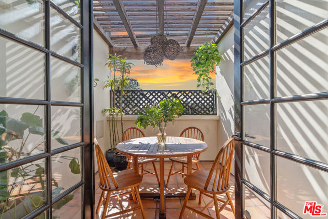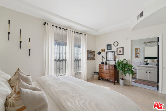 Offer deadline Mon., 9/22/25 at 5 PM. Sun-drenched Mediterranean Penthouse with sprawling private rooftop retreat. Peacefully tucked away in the top rear corner of a boutique Mediterranean building overlooking Beeman Park, this light-filled penthouse is a timeless ode to Spanish-style elegance. Architectural ceilings and ornamental finishes blend seamlessly with modern updates, creating a sanctuary that feels both warm and refined in the heart of convenient west Studio City. Inside, soaring 12-foot ceilings and a dramatic wall of windows bath the space in all-day natural light, elegantly framing sweeping views of the San Gabriel Mountains and mature treetops. Curved walls, double-stacked crown molding, and a cozy gas fireplace add warmth and character to the expansive living space, while a modern open-concept layout places bedrooms on opposite sides for optimal privacy. French doors open wide to a spacious terracotta-tiled patio with unobstructed western exposure, creating a seamless indoor-outdoor flow perfect for working from home, dining or unwinding at sunset. A dramatic spiral staircase leads directly to your own 2 oversized private rooftop deckstotaling over 500 square feet of versatile living spaceand offering stunning 360-degree panoramas of the Hollywood Hills, mountains and beyond. Whether hosting friends, stargazing over a fire pit, or simply enjoying golden-hour light, this space is a showstopper. Thoughtful upgrades include 7-inch wide-plank engineered hardwood floors throughout, built in dining banquet with hidden storage, fully replaced HVAC, newer stainless steel appliances, in-unit laundry, and a dedicated EV charger for your two tandem parking spaces. The building features breezy open air atrium hallways adorned with slate tiles, overlooking a serene central fountain and is just steps from Beeman Park's tennis and basketball courts, baseball fields, playground, trails and brand new community recreation center. Following the treelined sidewalks of the neighborhood will lead you to lively Ventura Boulevard and The Shops at Sportmen's Lodge: where an abundance of upscale dining, shopping, and conveniences await: Erewhon, Equinox, Sugarfish, Alfred's Coffee, Joan's on Third, Ventura Place Farmer's Market, Trader Joe's and Whole Foods are only a small sampling of the nearby amenities. Just a short distance away, escape into tranquil nature and enjoy breathtaking views of the San Fernando Valley at local hiking favorites Fryman and Franklin Canyon. A rare combination of privacy, character and convenience this is Studio City living at its finest. Situated between Laurel and Coldwater Canyon, for direct access into West Hollywood and Beverly Hills, and just minutes south from the 101 freeway for easy access to the east and west sides of LA.