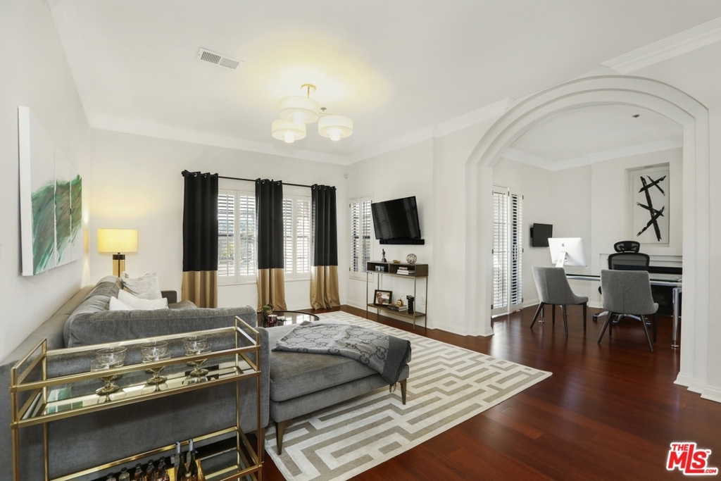 Exceptional light filled, Penthouse corner unit in one of Studio Citys most desirable areas. Located only steps away to popular Beeman park and just minutes to Ventura Blvd's many shops and restaurants. Enjoy the open floor plan of this spacious 2Br + Den + loft unit with its high ceilings, lovely architectural details and newer wood floors. The gorgeous kitchen features custom maple cabinets, granite counters, newer stainless appliances & breakfast bar that opens into the dining and living areas, perfect for entertaining. A cozy den with fireplace and private balcony facing south enjoys city lights and mountain views. The master bedroom features a walk in closet and nicely updated full bath. The guest bedroom with its soaring high ceilings and private balcony are adjacent to the 2nd updated guest bathroom and in unit laundry. A bonus loft space and private rooftop deck awaits at the top of the spiral staircase ideal for some precious outdoor time to yourself. This wonderful, turnkey unit offers great indoor/outdoor living. HOA includes includes EQ ins, Spectrum premium cable & high-speed internet.