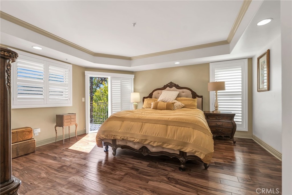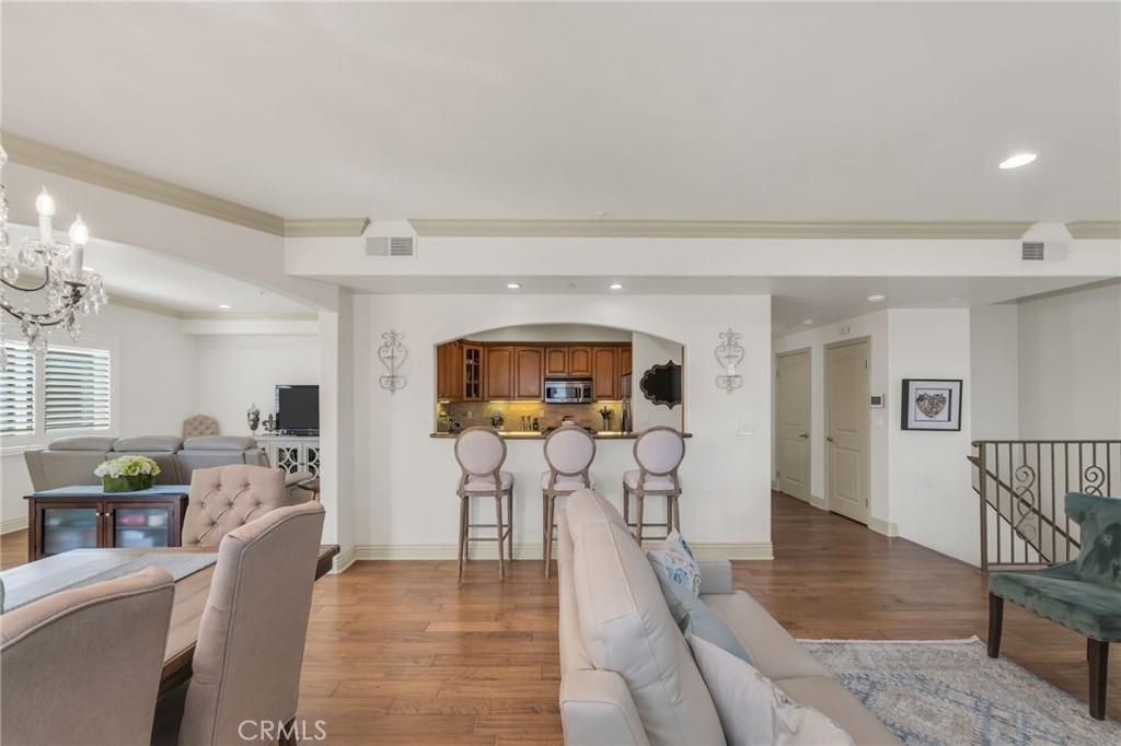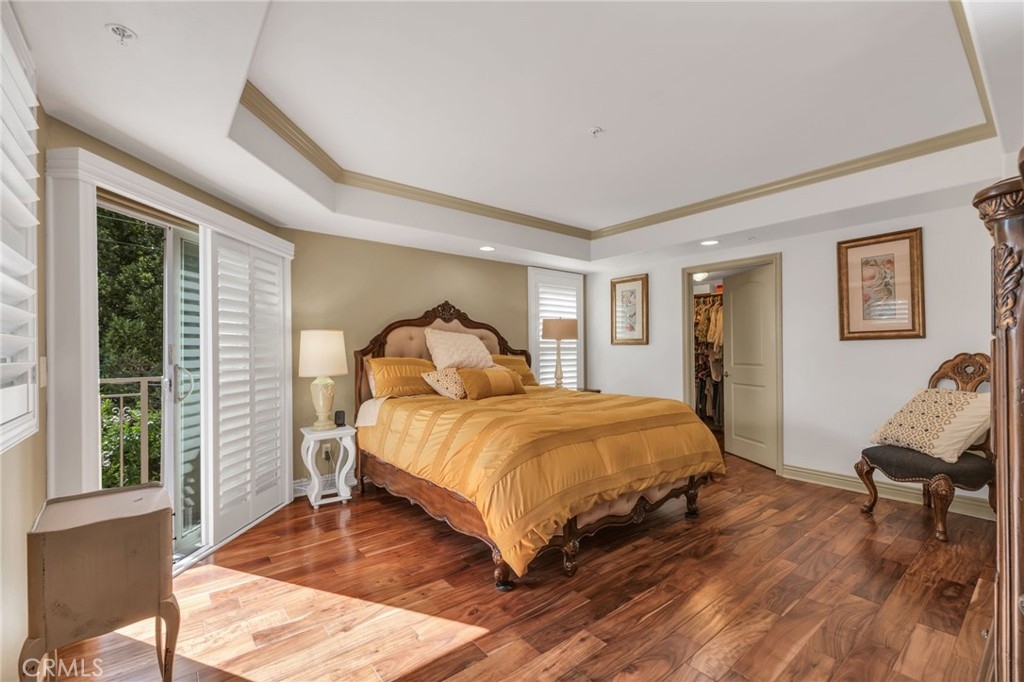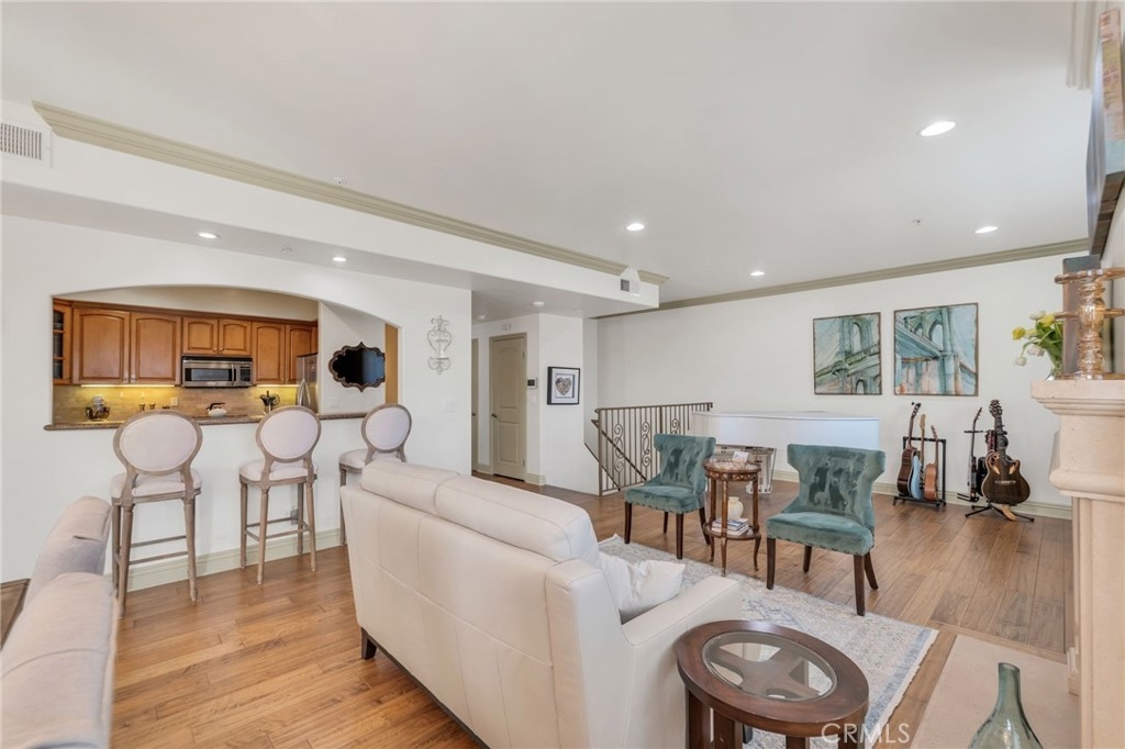 Luxury top floor south facing two story corner unit condo in the coveted Colfax Meadows neighborhood of Studio City, just steps from Tujunga Village. Located in Carpenter Charter Elementary and Walter Reed Middle School districts. This 2,140sqft townhouse style corner unit with 3 bedrooms & 2.5 bathrooms is located in The Dalton, an exclusive boutique building with only eight units. Open gourmet kitchen features Frigidaire Professional Series stainless steel appliances and granite countertops with breakfast bar. Hardwood flooring, crown molding and recessed lighting throughout, two balconies, two car side by side parking, and separate storage locker, this unit has it all! Entering you are greeted by a light filled well appointed living room and dining room with stone mantel fireplace. The separate tv/family room leads out to a corner south facing balcony, perfect for an evening BBQ. The private lower level includes all bedrooms with a primary suite that features an ensuite bathroom with dual vanity, walk-in shower, and separate jet tub, along with a spacious walk-in custom closet and its own private balcony. Other features include: Upgraded in-unit washer/dryer, custom California shutters, hardwired ADT security system, 2 car side by side parking, and separate storage locker. HOA features: Guest Parking, Bldg. EQ Ins., new roof 2022, touchscreen video call box, and security cameras throughout building, outdoor common area. Just steps to the amazing shops and restaurants of charming Tujunga Village including Aroma Cafe, Kreation Juice Bar, and Vitello’s Restaurant.