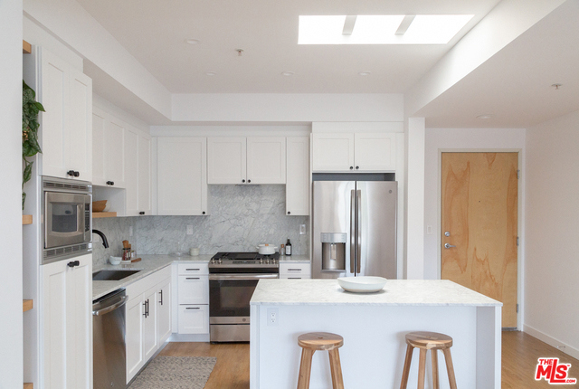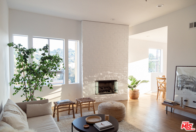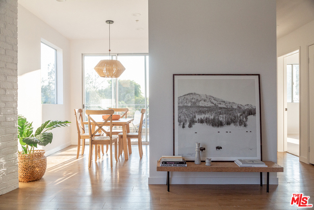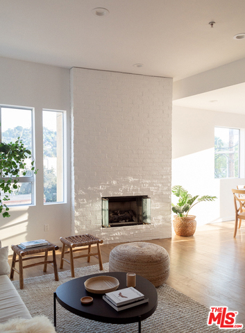 Light-filled corner penthouse condo with only one shared wall. Designer touches include high ceilings, kitchen with honed Carrera marble counter tops and new appliances, fireplace in living room, en-suite master bedroom with a walk-in closet, washer & dryer in the unit, dining area leading to a patio, and views of the surrounding hills. There are two side-by-side parking spots in the gated garage and ample guest parking. The building offers a pool, fitness center, business center and a welcoming access controlled lobby. Located on a quiet street, close to Woodbridge Park and Tujunga Village. Low HOA.