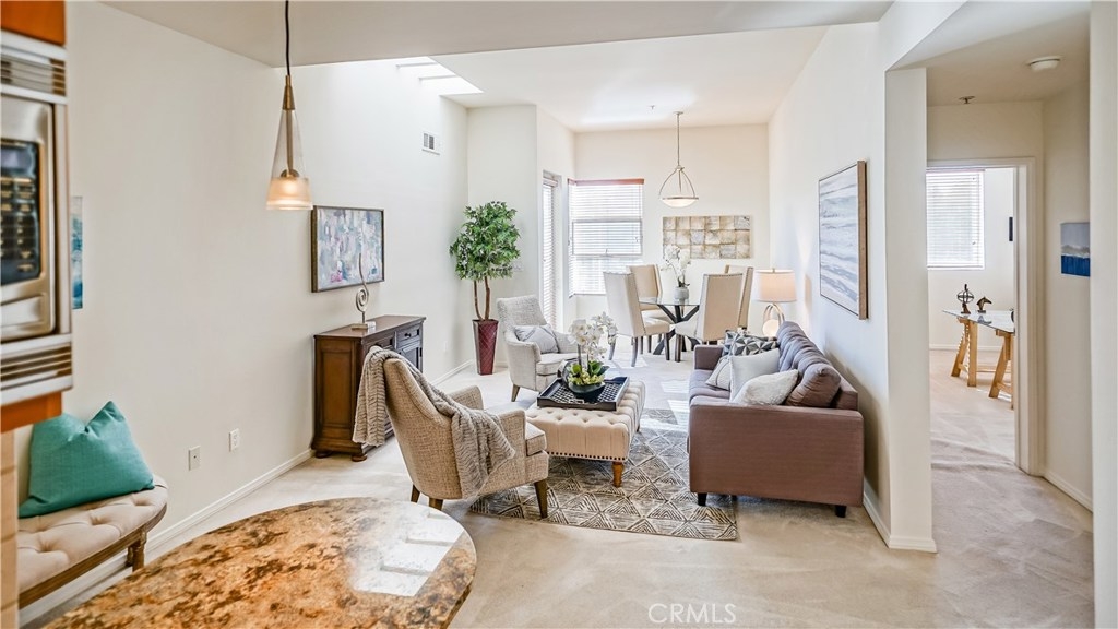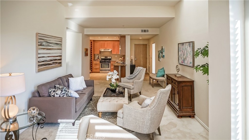 Highly Desirable Penthouse Condominium at The Woodbridge in Studio City. Light and Bright with high ceilings, gourmet kitchen complete with custom cabinetry, built-in wine rack, granite countertops, stainless steel appliances and breakfast bar. Dining Room leads to a balcony with Western facing exposure and views of the hills. Perfect sized Master Bedroom with walk-in closet and En-suite master bathroom. Generous secondary bedroom with walk-in closed and full bath. Additional features include new paint throughout and washer & dryer in the unit. The building offers a pool, fitness center, business center and a welcoming access controlled lobby. Located on a quiet street, walking distance to Tujunga Village, and easy access to the freeways.