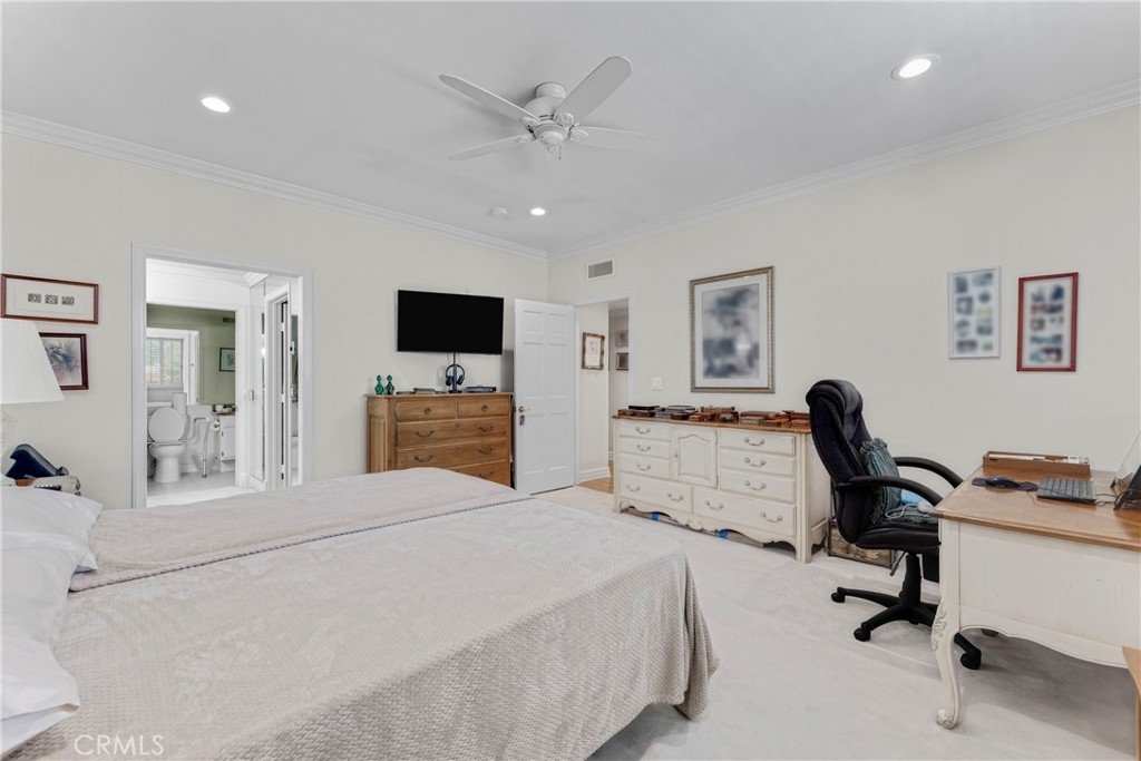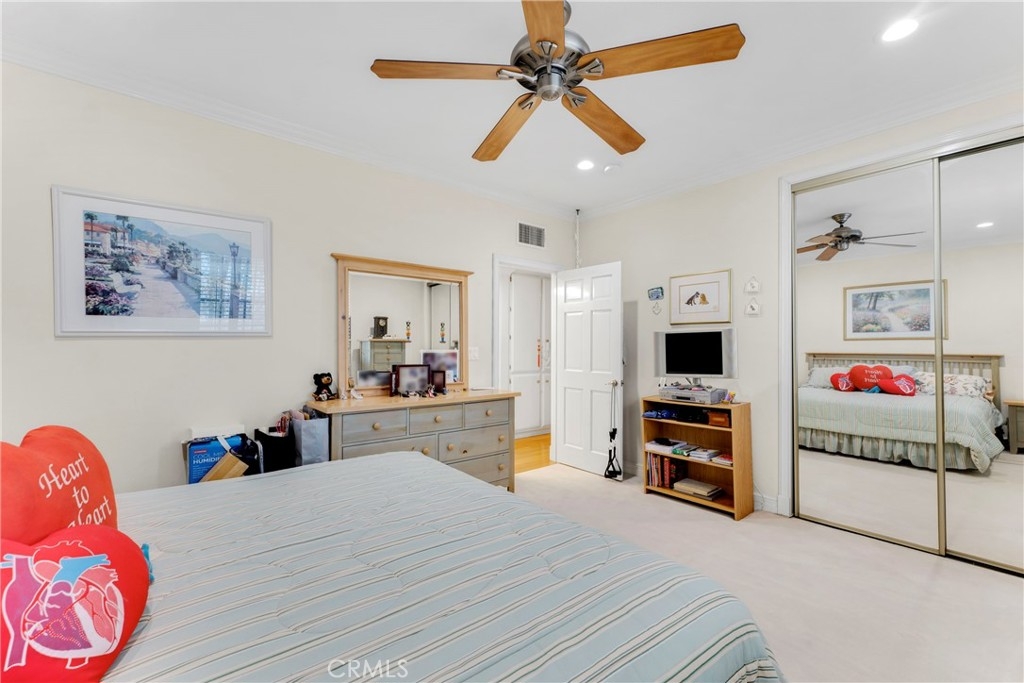 Welcome to this exceptional condominium in Studio City, nestled in the prestigious Colfax Meadows neighborhood and within the highly sought-after Carpenter School District. This beautifully designed residence features an open-concept living space, complete with two cozy gas fireplaces, one in the large family room and one in the den, elegant crown molding throughout, and a spacious balcony. The expansive primary suite boasts a generous walk-in closet, as well as a luxurious en-suite bathroom with a separate soaking tub and shower. The third bedroom is currently utilized as a den, presenting as a two-bedroom plus den layout. Additional highlights include central heating and air conditioning, and an in-unit laundry room for added convenience. Situated in a meticulously maintained and secure 20-unit building, residents enjoy a range of premium amenities, including a pool, spa, lounge area, gym, elevator, and gated covered parking. This prime location offers close proximity to Ventura Boulevard and the charming Tujunga Village, known for its popular restaurants and boutique shops. With easy access to major freeways, this residence is an ideal choice for industry professionals seeking both comfort and convenience.
