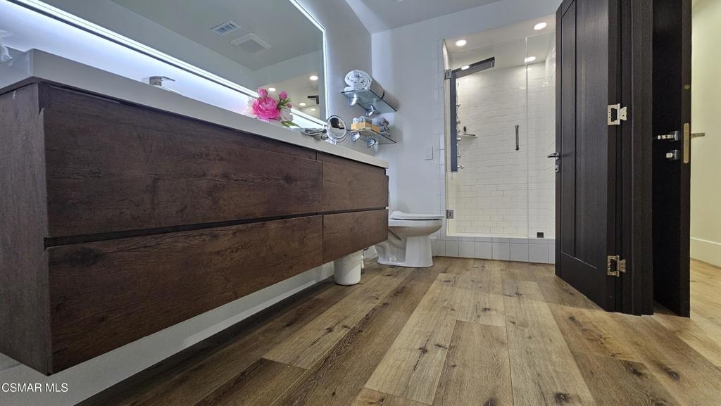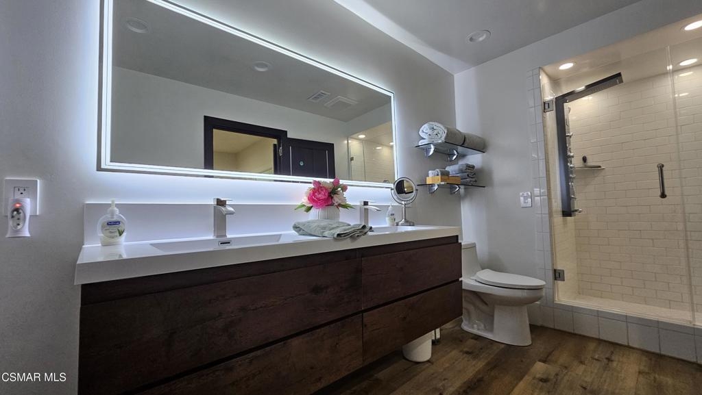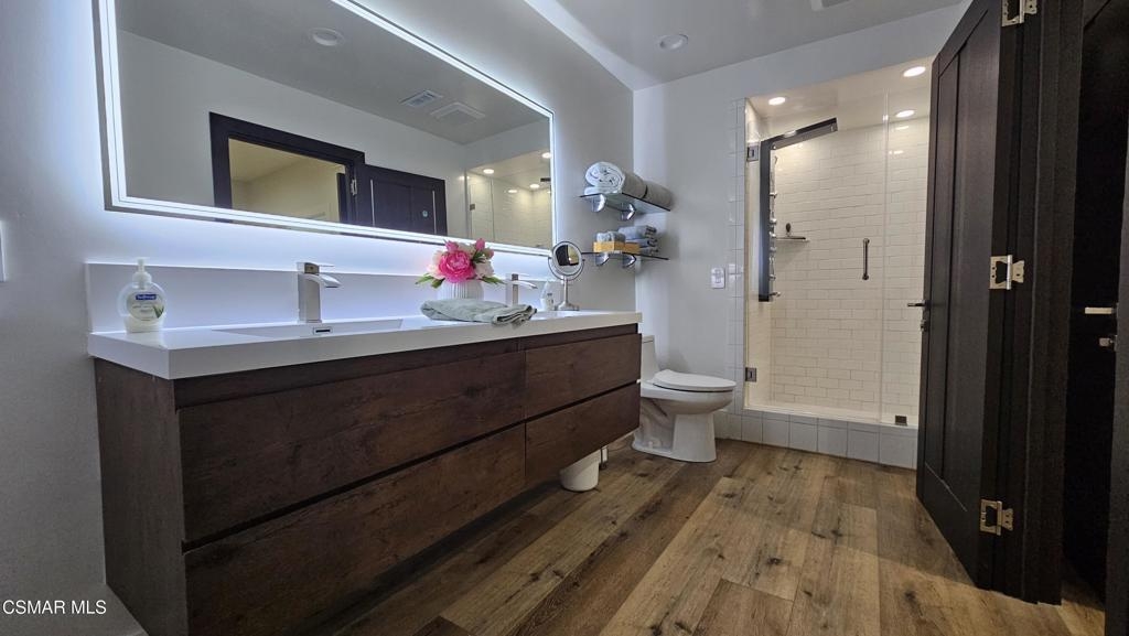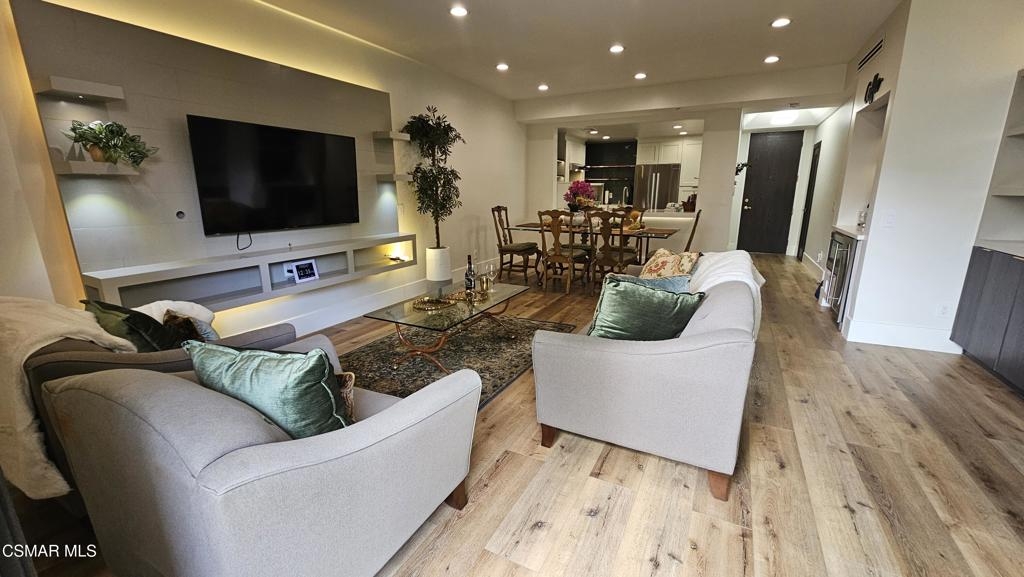 If you are looking for a place to call home, look no further. This is your place!The neighborhood is a highly desirable- prime location, surrounded by other luxury condominiums and newly built luxury apartments. Steps away from local eateries like 'Joan on Third', 'Alfred Coffee', 'And Olive & Grill' and a short drive to 'The Six Social House'. As you explore the neighborhood you'll appreciate the eclectic tasty restaurants, cafe, and shops to choose from. You'll love the mini community within the city and the best part is that you don't have to travel far to enjoy it. Easy access to freeways and schools. 'Carpenter Elementary School' is highly sought-after and it's only about a mile away.The building is modern and offers clean lines. There are designated two underground tandem parking spaces. With other public parking spaces on the street. Security feature -private intercom. providing access to the property. As you enter the building, you'll appreciate the openness this building has to offer, it shows light and bright, clean and tidy. The walkways are wide and offer high ceilings. There is a trash shot, a designated mailbox area, and an elevator access to the parking garage. This unit is from the main floor.The property has been significantly upgraded, it's spacious, shows light and bright. Offers an open floor plan concept living room and kitchen. Super well-designed and well-used of the space, with the added features of these custom bookshelves and custom build in TV counsel. Upgraded recessed lighting throughout. Extra floor outlet around the living room, and formal dining area. Remote, curtain openers. Love the coffee/tea/ wine station with the upgraded water faucet, and built-in shelves! Custom-built - 'Sharp' microwave drawer, and wine cooler from 'Zepher' that helps chill your wine- so it's ready for pouring. Beautiful, sleek, clean upgraded countertop with a push-up charging station. The kitchen is also state-of-the-art, with additional custom features. All of the kitchen appliances have also been upgraded - from industry leaders: 1. Stainless steel Cafe - Induction stove top with blue tooth programming capability, 2. Bosch refrigerator with blue tooth capability, 3. Stainless steel dishwasher by Bosch super silent plus. Too much to show you in this short video, come by and I'll explain more.The laundry area is located in the hallway - showing a full-size upper and lower washer and dryer. The 'nest' thermostat' is also located in the hallway.The upgraded guest bathroom is located in the hallway- offering a full shower and tub with a newly installed shower unit with an upgraded light-up mirror, with modern hardware and doors. As you travel further down the hallway, you'll meet up with the first bedroom. Love how spacious this room feels. There is a walk-in closet, and of course, a remote-control curtain opener. The primary room is spacious and inviting. It offers a walk-in closet, a private balcony, and an ensuite bathroom. Remodeled bathroom with double sinks, plus an upgraded vanity, with light-up mirror. New toilets and shower. The unit in the shower is also newly installed. There is one more room attached to the primary bedroom. The seller added a double French door and created their own private home office. With the help of virtual staging, re-created a virtual office and nursery for your consideration. The previous seller had marketed this space as the third bedroom with bunk beds. They added a door opening from the hallway. Whatever you decide to do, it's nice to know you have choices! There are too many special spotlight fixtures throughout, make sure to allow me to show them to you when you stop by to view this property before this property is gone! As always, please do all your due diligence prior to closing of the escrow.