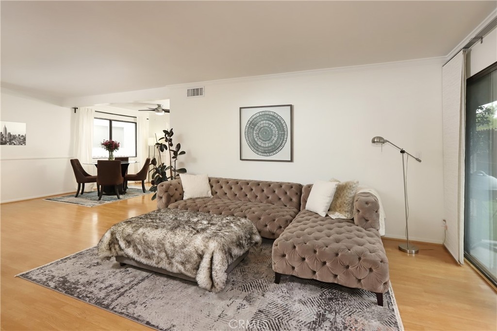 Welcome to this expansive 1 BR/1BA condominium in Studio City. Located North of Ventura Boulevard, this charming, architecturally-unique complex has only 12 units and low HOA fees. Freshly painted throughout, this condo has a large bedroom that can easily accommodate a king-sized bed, and features a custom, good-sized closet. The kitchen has granite counters and stainless steal appliances. Its spacious open floor plan flows from the living room to the dining area, and then to a large private patio, perfect for entertainment or simple relaxation. Adjacent to the dining area is additional space for a home office or bonus room. This unit is situated in a quiet secure building with a gated entrance, one covered parking space, storage closet and shared laundry area. This boutique, quiet complex sits across from the LA Riverwalk, and is within close distance to Ventura Blvd, shops, restaurants, iconic Sportsmen's Lodge, Equinox gym, Ralph's, and convenient access to the 101 freeway, Warner Bros., Disney, Universal and other studios and theaters. It is truly a gem in the heart of the valley.