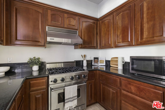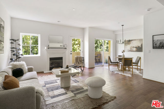 The perfect Studio City condominium. The entry foyer of this beautifully maintained single level unit leads to a light filled open living area with balcony for enjoying views or quiet contemplation. The living space features high ceilings, wood floors, recessed lighting, with separate dining area & a mantled fireplace, while the perfect gourmet kitchen features a Viking stove, custom cabinets & granite countertops. The Primary Bedroom has it's own terrace/balcony, walk in closet and tastefully updated bathroom. The spacious second bedroom also features an en suite bathroom and walk in closet. The unit also offers a guest powder room off the foyer & full size washer and dryer in its own laundry closet. This secured 8 unit building provides 2 tandem parking spaces & is located a few blocks from popular Beeman Park & Ventura Blvd offering a variety of upscale dining options, fitness studios, gourmet coffee shops & fashionable stores. A wonderful place to call home.
