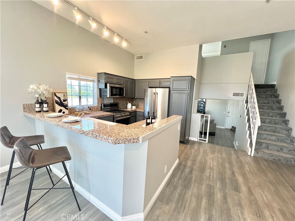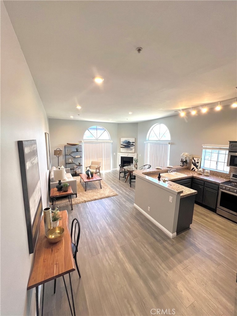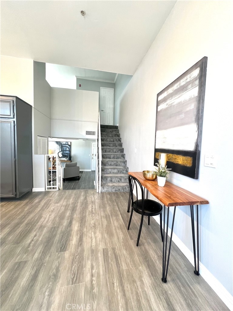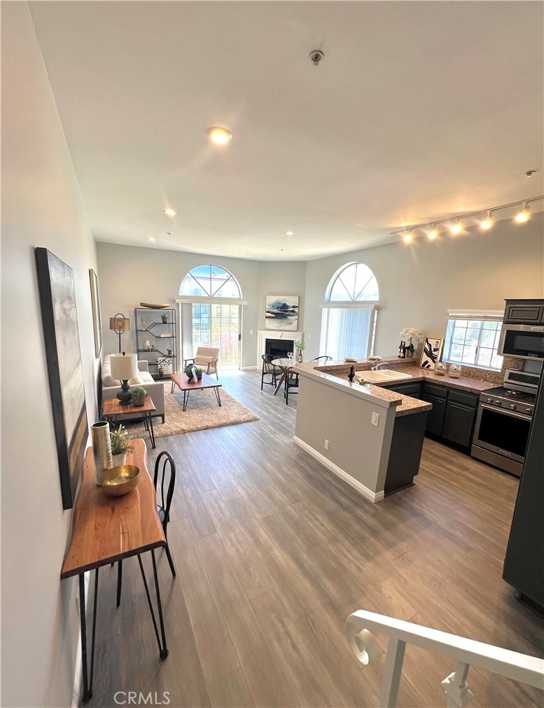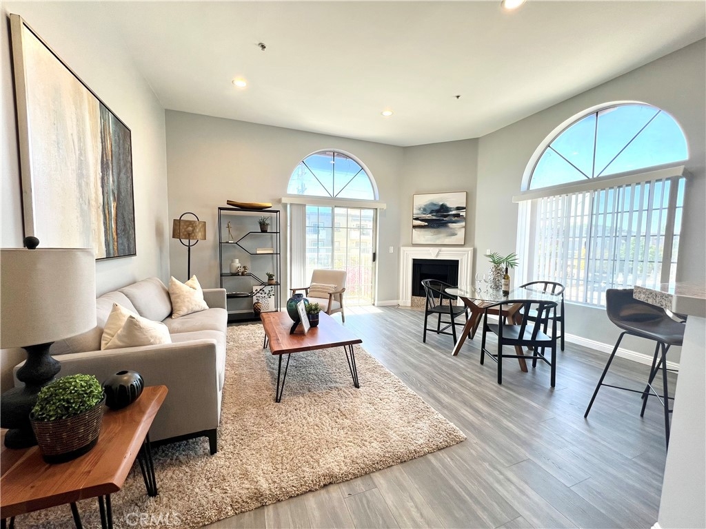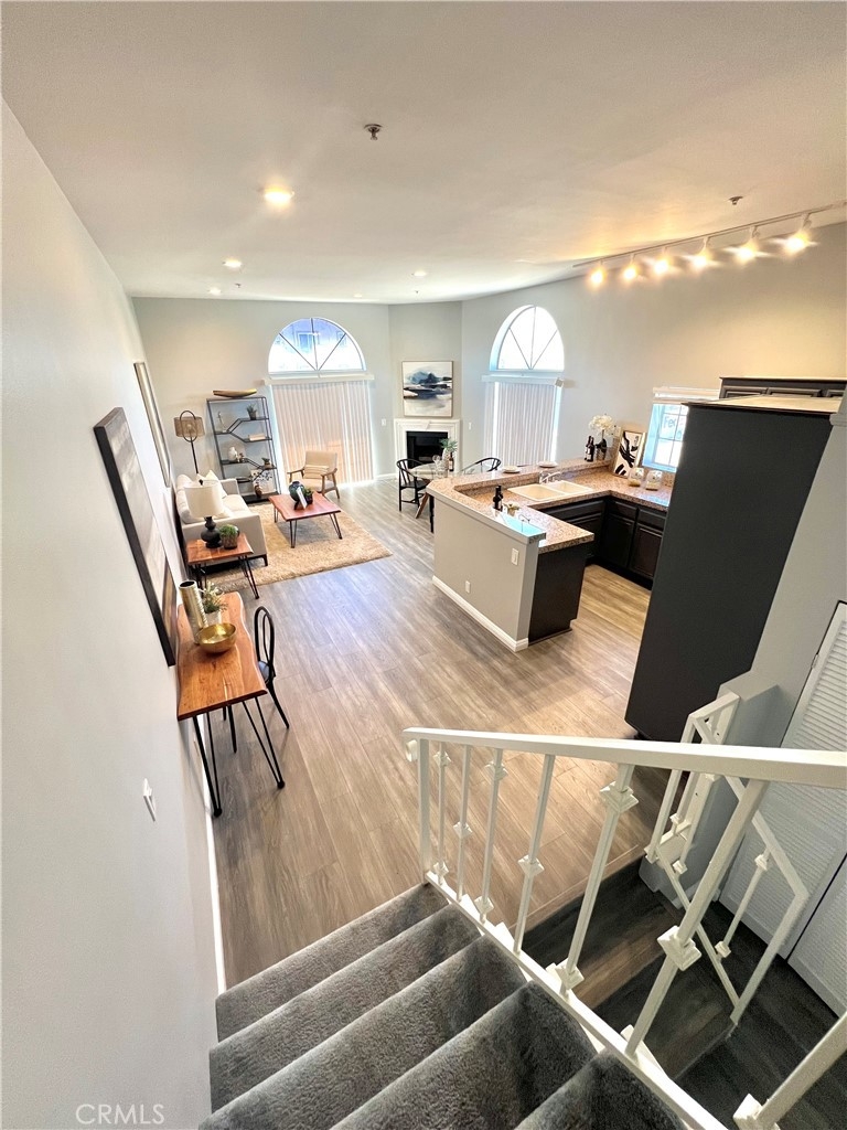 REDUCED!! Adorable penthouse end unit shares only 1 wall offering privacy galore. High ceilings make this space feel luxurious, open and bright with lots of natural light. Views from the living room and kitchen offer peace and tranquility while the balcony off of the living room provides the option to spend time outside. An open work space, office or alternate bedroom greet you upon entering which has a beautifully designed marble bathroom. Step up into the dining area, kitchen and living room for the unbarred social setting where you can cook and entertain. Kitchen has newer Kitchen Aide stove, microwave, dishwasher and refrigerator. Upstairs in the loft-style master suite, there is an additional outpouring of natural light, closet and full bathroom. Stackable washer & dryer included in sale. Tandem 2-car parking in underground parking. Trendy neighborhood facilitates close proximity to freeways, restaurants and retail. Don't futz around, bring your buyers and scoop up a lovely condo in a highly desired neighborhood that could be either a beautiful place to call home or an investment to add to a real estate portfolio.