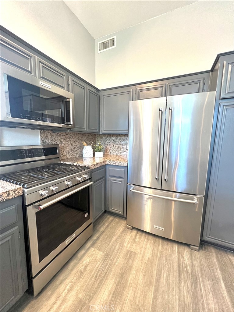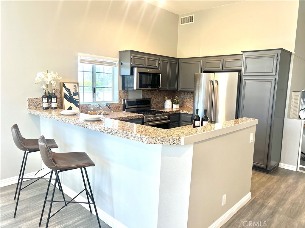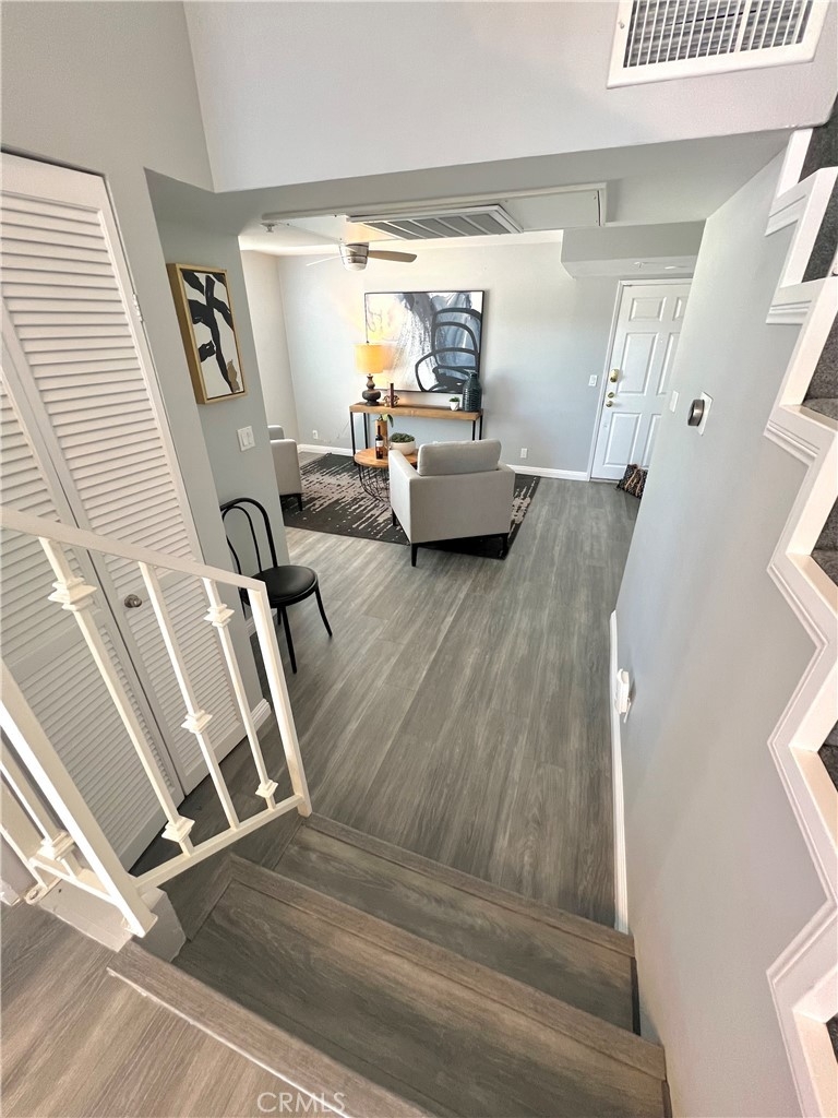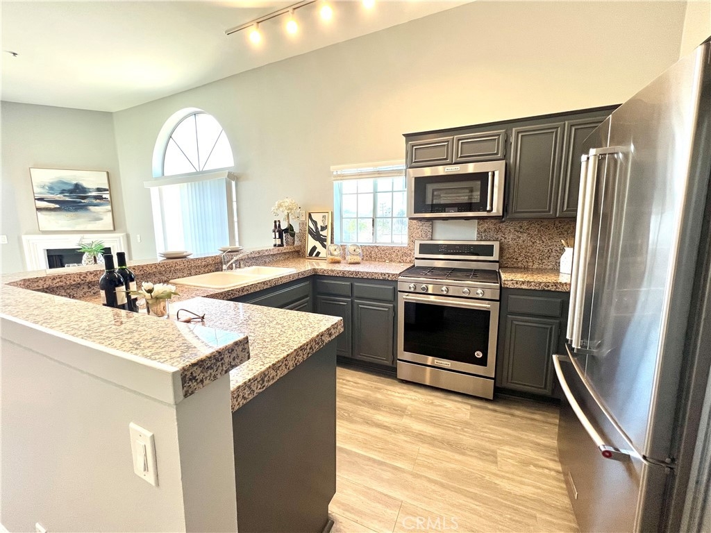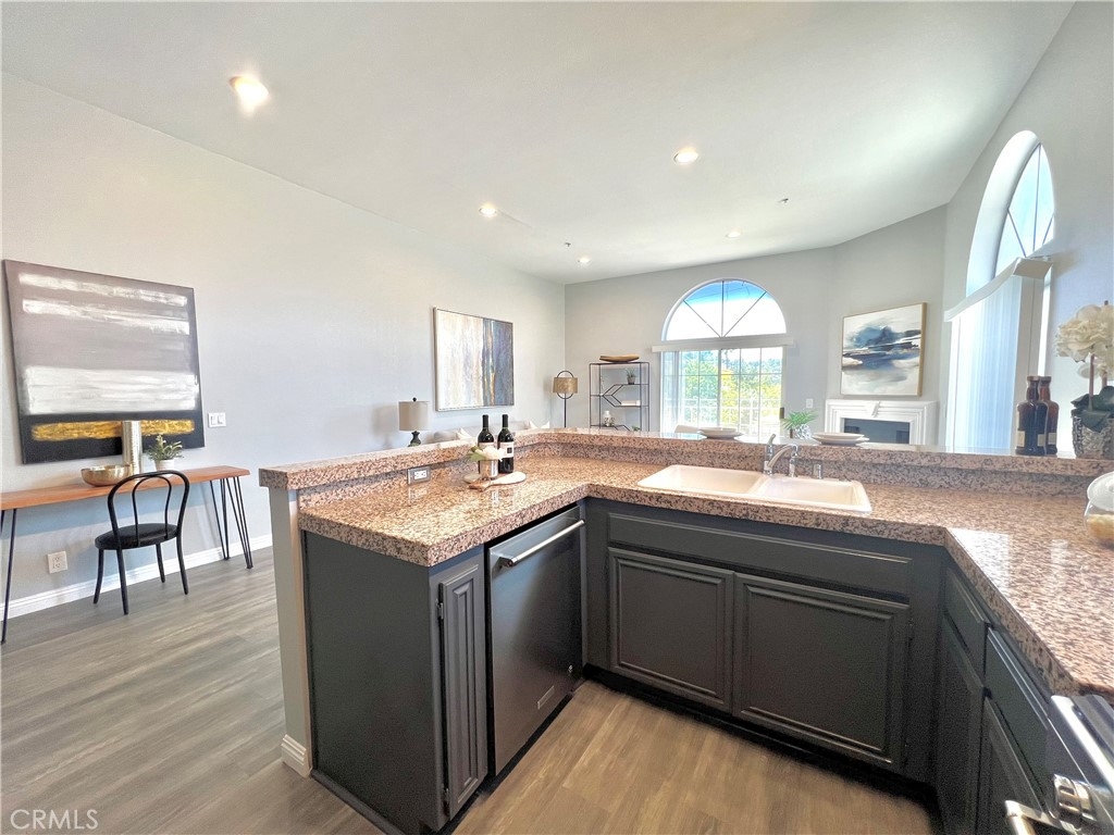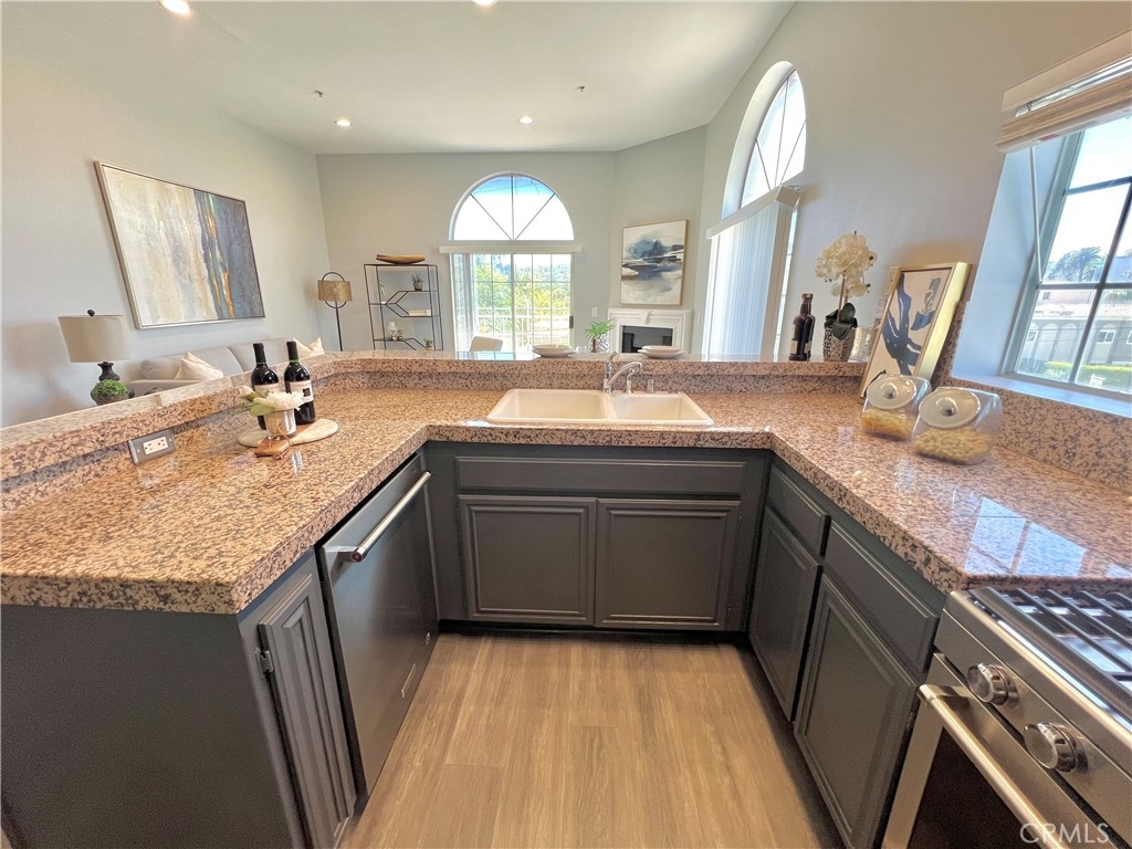 REDUCED!! Adorable penthouse end unit shares only 1 wall offering privacy galore. High ceilings make this space feel luxurious, open and bright with lots of natural light. Views from the living room and kitchen offer peace and tranquility while the balcony off of the living room provides the option to spend time outside. An open work space, office or alternate bedroom greet you upon entering which has a beautifully designed marble bathroom. Step up into the dining area, kitchen and living room for the unbarred social setting where you can cook and entertain. Kitchen has newer Kitchen Aide stove, microwave, dishwasher and refrigerator. Upstairs in the loft-style master suite, there is an additional outpouring of natural light, closet and full bathroom. Stackable washer & dryer included in sale. Tandem 2-car parking in underground parking. Trendy neighborhood facilitates close proximity to freeways, restaurants and retail. Don't futz around, bring your buyers and scoop up a lovely condo in a highly desired neighborhood that could be either a beautiful place to call home or an investment to add to a real estate portfolio.