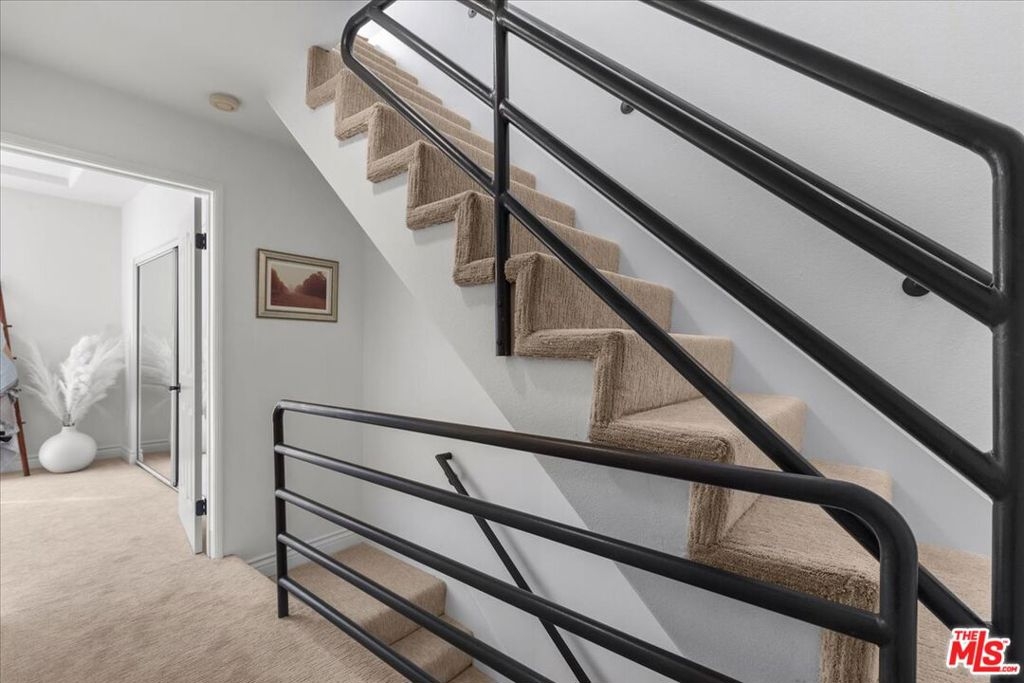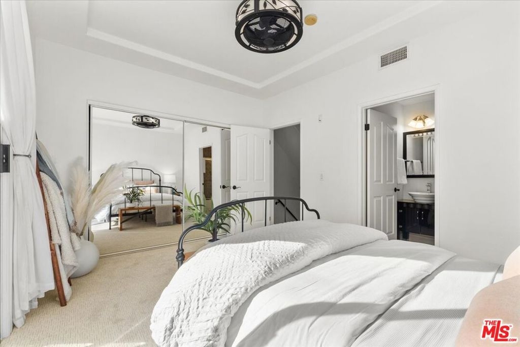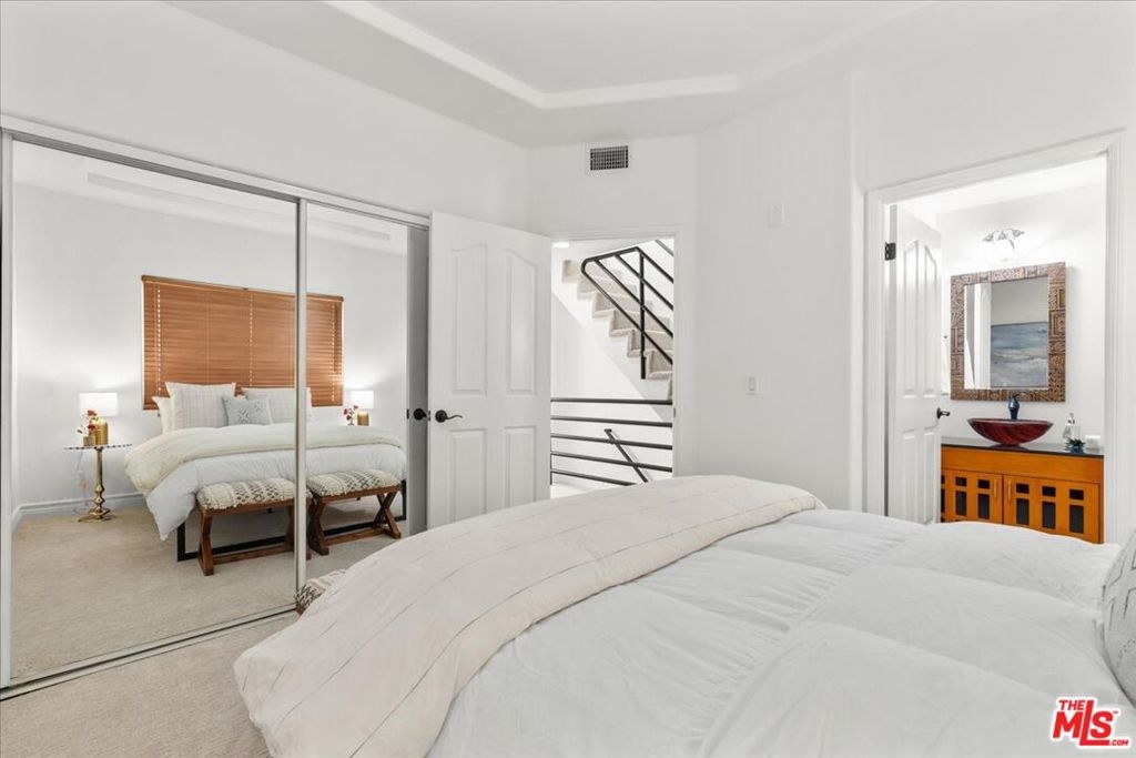 Welcome home to this townhouse style condo in the heart of Studio City which features high ceilings & open floor plan. This unit has been upgraded w rich dark floors that contrast seamlessly against freshly painted "whisper white" walls throughout the home. The expansive living room, anchored by a sizable fireplace is highlighted by 9ft ceilings. Kitchen has newer s/s appliances, double s/s sink, recessed lighting, ample storage & counter space. The kitchen opens to the dining area. There is oversized under-stair storage on the 1st floor. There are two Primary BRs both w ensuite baths on the 2nd level. Brand new carpeting lines the staircases & both bedrooms. One BR opens to a pristine balcony. Newer Miele stacked washer & dryer occupy their own closet on the 2nd floor. There are 2 assigned parking spots & guest parking spots in the gated garage, a private pool & a gym w hand weights & weight machines. Nothing completes this offering better than a 300 sf private terrace perfect for alfresco dining. The terrace is a private rooftop deck above the unit w views of the mountainous LA skyline. Located in the award winning Carpenter school district, the 20 unit Whitsett Green community is across the street from the Weddington Tennis courts & Golf course. Tennis courts are rented by the hour. The LA River walk access is close by; there are many local food markets, and the notable Universal and Warner Brothers studios are nearby; there are many different restaurants & boutiques along Ventura Blvd to choose from in Studio City. Pets ok. The neighborhood abounds w many services like Barnes & Noble, LA Fitness, yoga studios, and is graced with beautiful hiking and nature trails like Tree People Park & Fryman Canyon Park minutes away.