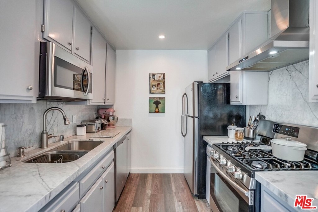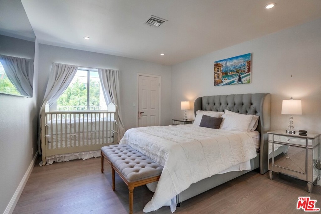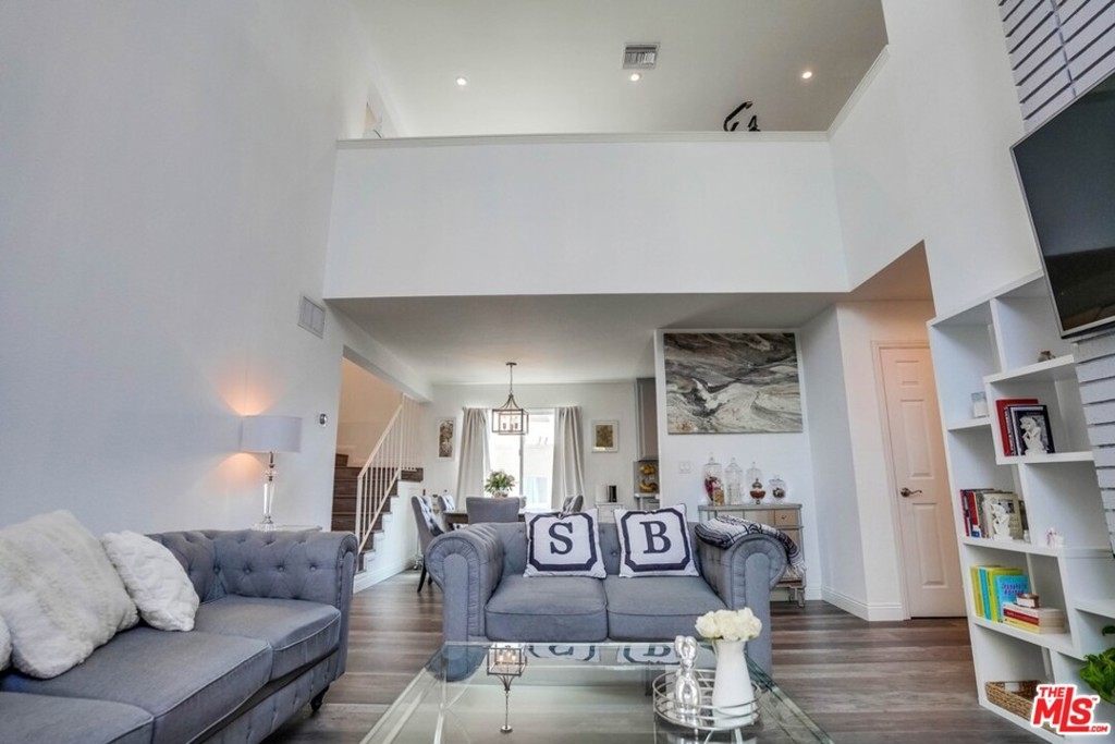 Fabulous luxurious large townhome style condo with no one above you and at rear of building in heart of Studio City. Small complex with low HOAs would suit the pickiest of buyers. Over 1550 sqft of upgraded designer finishes throughout. Soaring impressive ceilings with tons of light, stylish chandeliers. Private balcony overlooking green zen courtyard. Two Master bedrooms, one on each level, and a bonus office, den, play room with views over rooftops to the mountains. Fabulous large windows, lots of natural light, large Walk in closets, tons of storage, gas fireplace, fully equipped kitchen, modern appliances. Gas hotplates. Dining area. New Engineered wood floors throughout. Immaculately kept. Set back from the street enter through a beautiful zen courtyard with pond, this oasis to call home will delight. Great for sharing/ working from home. central to the best restaurants, shopping and entertainment that Ventura Blvd and Tijuanga village have to offer. Pet friendly. A must see!