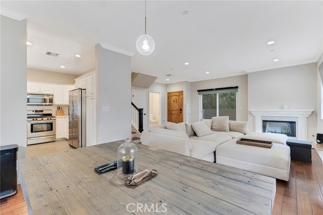 Seize this rare opportunity to own one of just five exclusive, tri-level townhomes within a secure, gated community in highly sought-after Studio City. This home flawlessly blends the space of a house with modern condo convenience, offering three spacious bedrooms and three full baths. A striking custom front door entry and beautiful two-tone staircases greet you, setting a sophisticated tone. The generous main-level living room features a cozy gas fireplace and sliding doors opening to a private patio, perfect for relaxing outdoors. The well-appointed kitchen is both functional and stylish, boasting sleek white custom cabinetry, durable stone countertops, and a full suite of stainless steel appliances. Upstairs, the expansive primary suite is a true retreat, featuring its own elegant gas fireplace and mantle, a large walk-in closet, and a spa-like full bath with a relaxing soaking tub and separate glass-enclosed shower. Convenience is assured with a full laundry area located upstairs. The home also includes two additional bedrooms and bathrooms, along with the incredible practical amenities of two tandem parking spaces and a separate, large private storage space. This is the pinnacle of turnkey luxury and privacy in the heart of Studio City.