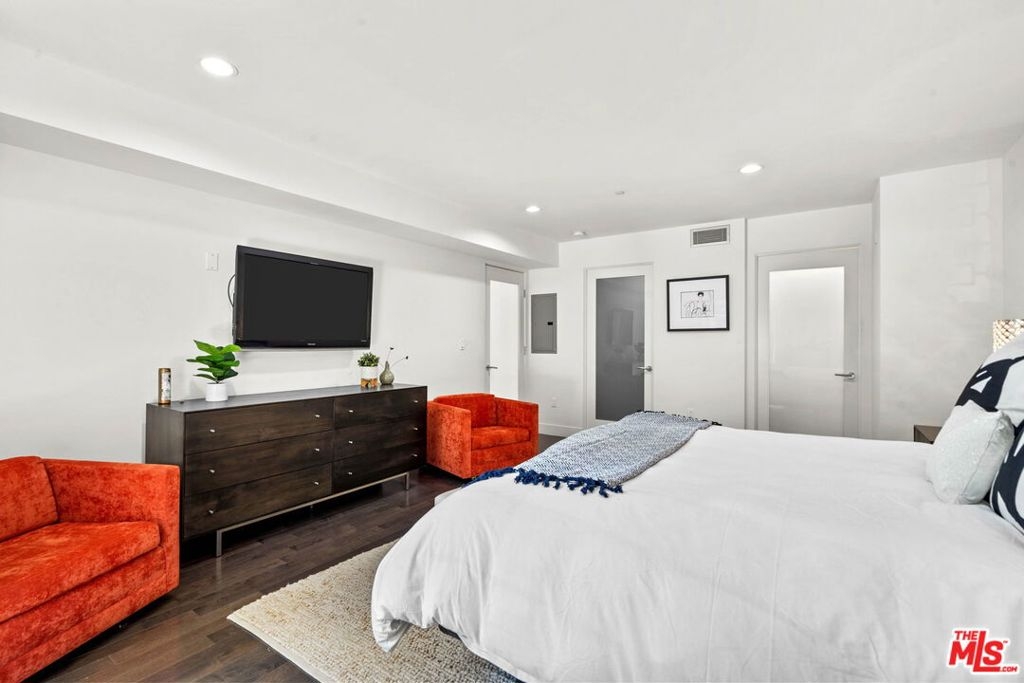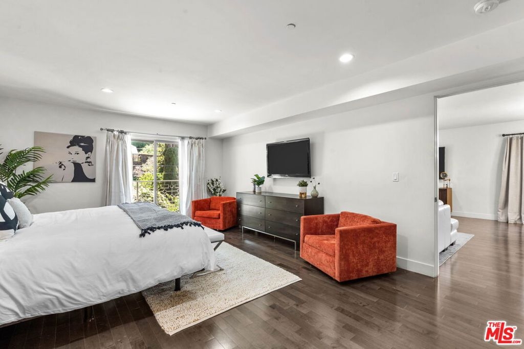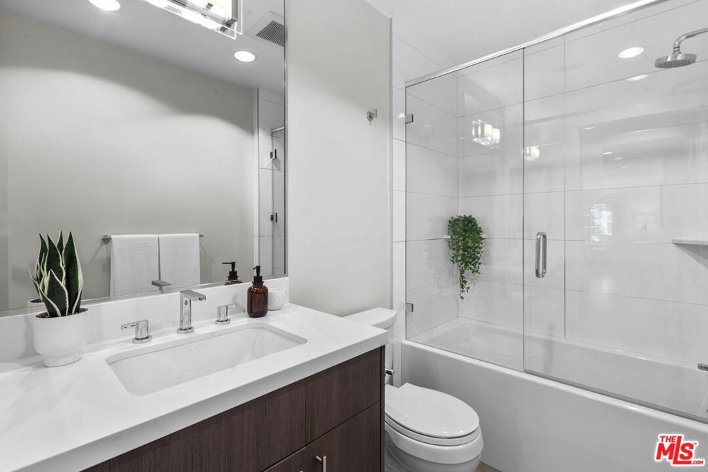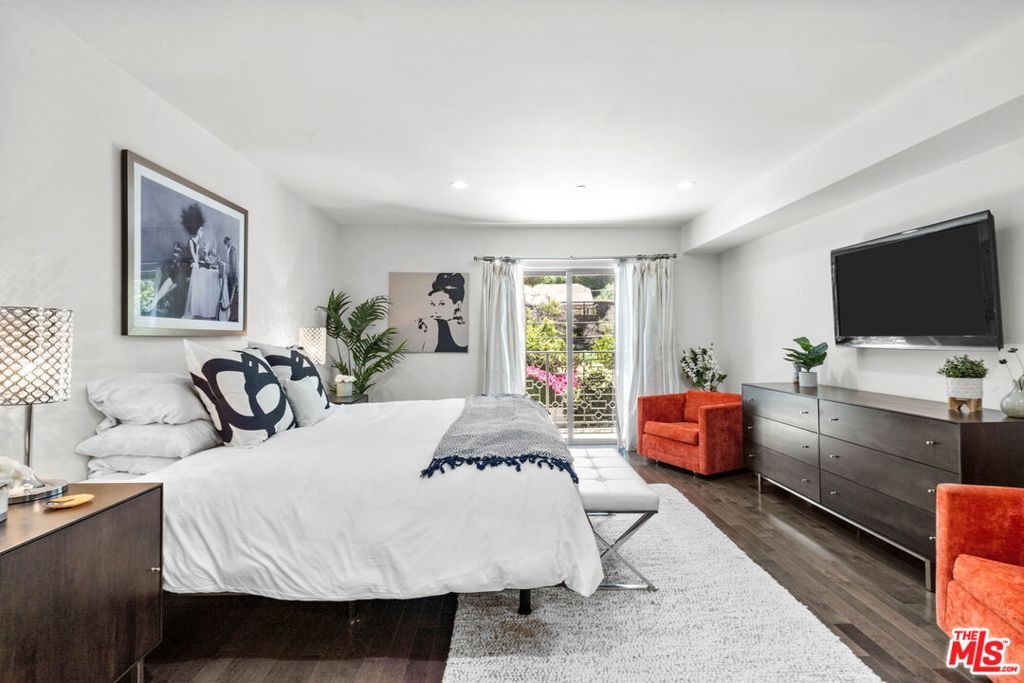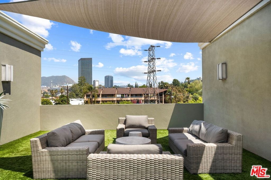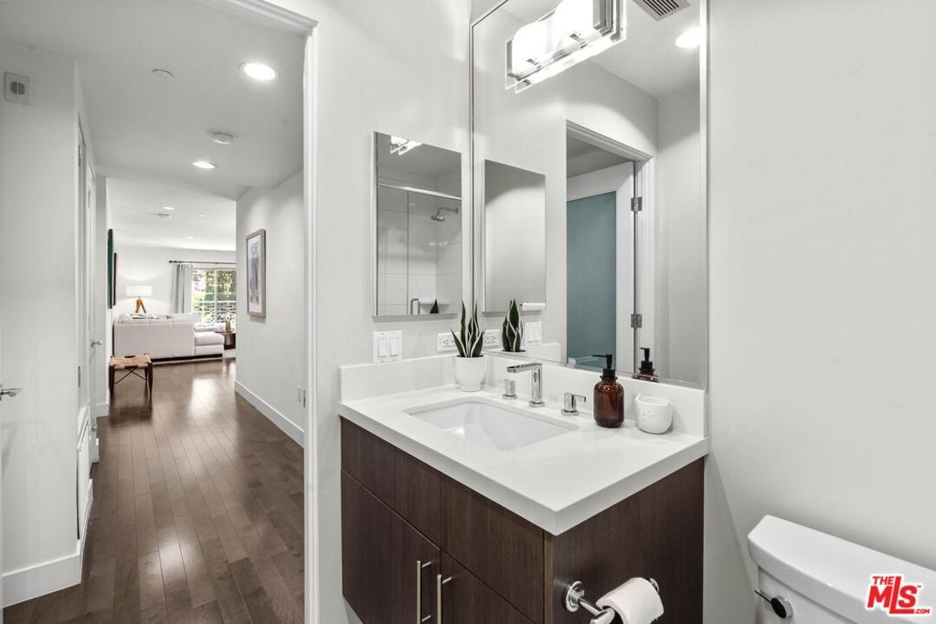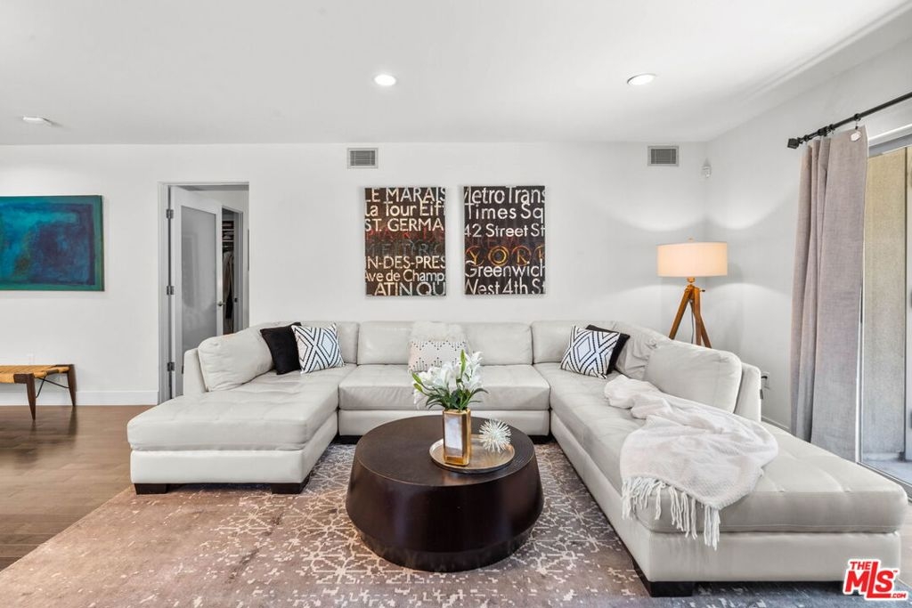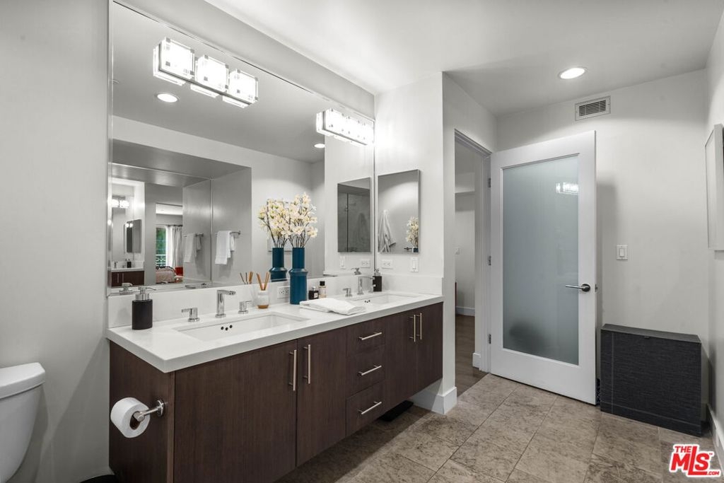 Step into this modern sanctuary nestled within an esteemed building, ideally positioned south of the bustling boulevard. This exceptional corner unit condo welcomes you with an abundance of natural light, boasting 3 bedrooms, 2.5 bathrooms, and a single-level layout designed for seamless contemporary living. Enter the heart of the home to discover a captivating open gourmet kitchen featuring Caesarstone countertops and exquisite cabinetry, offering an elegant space for culinary pursuits. The convenience of in-unit laundry further enhances the appeal of this refined residence. Retreat to the spacious primary suite, a true haven with its walk-in closet, private balcony, and luxurious en-suite bathroom. Indulge in the opulent soaking tub, expansive shower, and dual vanities, creating a spa-like experience within the comfort of your home. Equipped with central HVAC & Nest, this exclusive condo ensures year-round comfort, fostering a serene and inviting ambiance. Relax and unwind as you take in the tranquil hillside views, inspiring a sense of calm and tranquility. Perfectly situated just moments from renowned dining, upscale shopping, and entertainment studios. This remarkable residence offers a harmonious blend of urban convenience with your own private Tesla charger. Embrace the opportunity to escape to your serene haven amidst the vibrant cityscape. Don't miss this extraordinary chance to experience elevated contemporary living in a sought-after locale. Make this exquisite retreat your new home!