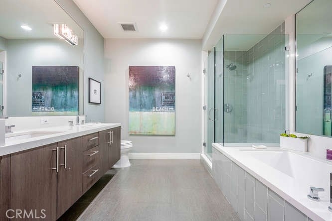 Welcome to this stunning Penthouse unit located south of the Blvd in prime Studio City w/ views of hillside & Universal City. Upon entry you will experience the perfectly functional floor plan, harmonious energy & sun filled rooms. This chic unit offers 3BR + 2.5 BA, approximately 1,691 sq. ft. of living space & balcony that looks out onto the tree lined street. Enjoy cooking in the open gourmet kitchen w/ Caesar stone counters, SS back splash, top of the line appliances & European wood laminate cabinets. The open living-dining rm. features Canadian maple wood floors, gas fireplace, recessed lighting & wood window blinds. Retreat to the master suite w/ large spa-like bath, dual sink vanity, & a large walk-in closet w/ custom built-ins. Other features include: stackable laundry inside unit, alarm system, & 2 tandem parking spaces. The building has a landscaped entry & courtyard, water fountain, outdoor public terrace on the 4th fl., fitness center & a business center. Enjoy living close to Universal city, metro red line & minutes from Hollywood. This is a special unit!