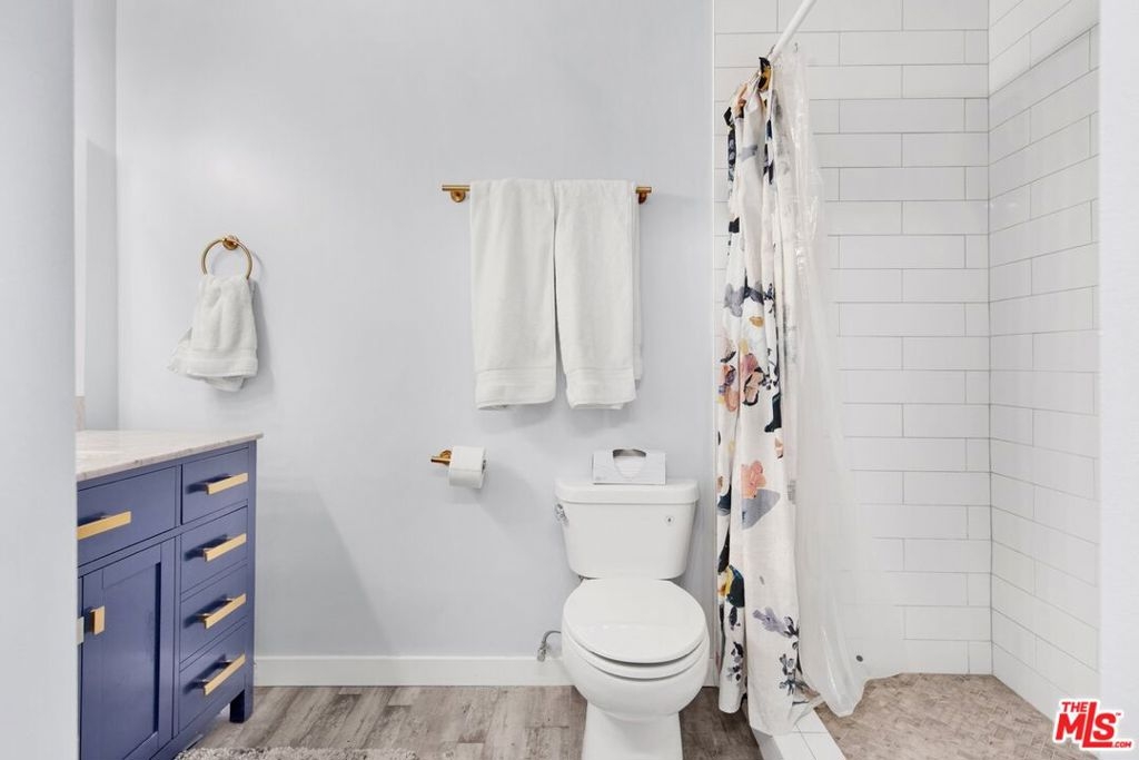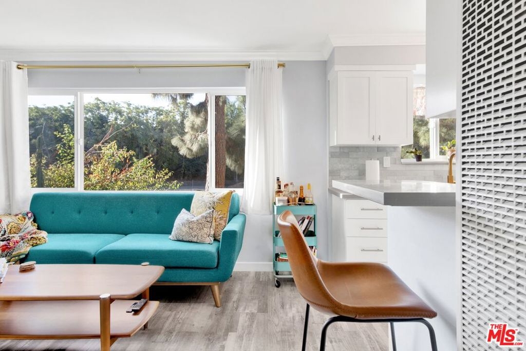 This beautifully remodeled studio condo is located in a quiet community right on the border of Studio City, North Hollywood, and Toluca Lake, just a short drive from Universal City and Hollywood. The condo features stunning green-space views of the LA River, and has been completely updated with a new kitchen, bathroom, luxury vinyl plank flooring, low e3 triple-pane windows, wifi-enabled wall AC unit, and paint. The open floor plan makes the space feel bright and airy, and the semi-private balcony is the perfect place to relax and enjoy the views. The kitchen is fully equipped with quartz countertops, blue pastel subway tile backsplashes, stainless steel appliances, and the bathroom features a large subway tile walk-in shower. You'll have plenty of space for your wardrobe in the large, custom-built closet in the hall leading to the bathroom. The condo also comes with one assigned semi-private garage space with additional storage cabinets. This community offers a variety of amenities, including a swimming pool & spa and laundry facilities (note: per seller, the HOA does allow for in-unit laundry installation). HOA is not FHA/VA approved, but Seller is open to exploring spot approval options with FHA/VA buyers. See the last three pictures for a design concept to wall off a bedroom if a 1 bedroom layout is preferred to the existing studio layout.