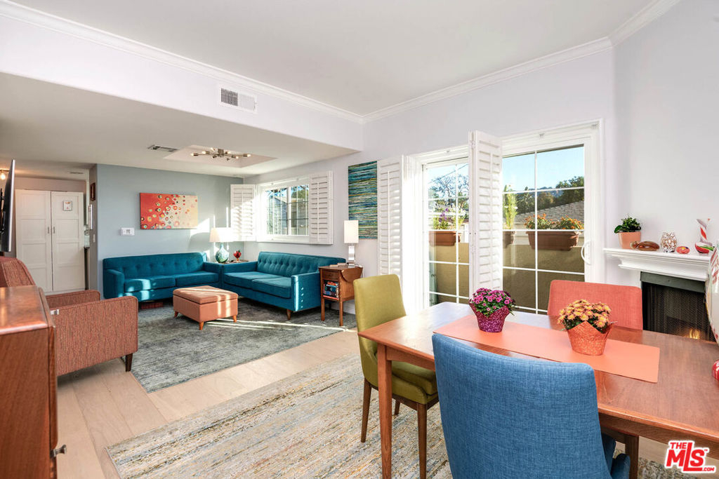 Sophisticated Tujunga Village townhouse. Take pride in owning a bright and beautiful home in one of the Valley's most coveted enclaves with 2 bedrooms/3 baths 1,000 sq. ft. full of natural light. Located in the rear of the building, the unit is private and quiet. The spacious floor plan is ideal for effortless entertaining and cozy evenings by the beautiful corner fireplace and balcony access. Recently added wide plank oak wood floors, plantation shutters, new windows & a gorgeous modern palette throughout. Your chef's kitchen features all new stainless steel appliances incl. gas range, quartz countertops, subway tile backsplashes, newly raised ceiling & generous storage. Remodeled main floor powder room and under stair storage. Upstairs, dual bedroom suites with plush carpeting, private bathrooms, generous closet space, and stackable washer/dryer. Enjoy coming home to this lovely well-maintained complex with a swimming pool, gated courtyard and subterranean parking. Nearby is The Village with quaint shops and boutiques, Woodbridge Park and Ventura Blvd.