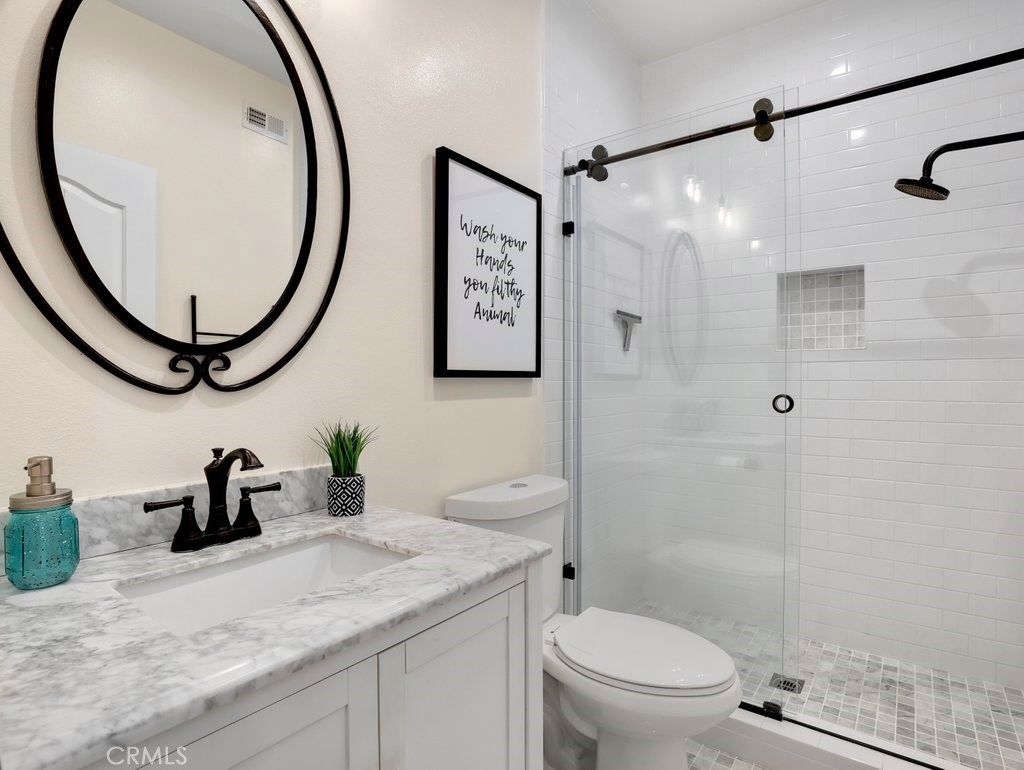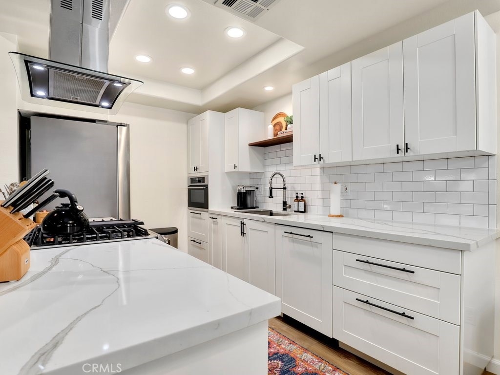 Gorgeous and newly renovated 2-story 2bd/2ba townhome in the heart of Studio City. Enter on the main level where you’ll find a modern and generous open concept floor-plan perfect for entertaining and hanging with your family and friends! The kitchen features beautiful quartz countertops, a subway tile backsplash, ample storage with soft close drawers, a fully integrated dishwasher and new stainless steel appliances. Other features on the first floor include a gas fireplace, plantation shutters, LED/recessed lighting on dimmers, a private outdoor patio and an updated bathroom with Carrera granite tile throughout. 2nd level includes a bathroom with a spa tub, two spacious bedrooms with their own walk-in closets and an in-unit laundry room. Master bedroom boasts a beautifully vaulted ceiling with a ton of natural light. Among other amenities are new paint and luxury vinyl plank flooring throughout entire unit, beautiful crown molding, central air and heat, two assigned tandem spots in a gated underground garage and an on-site community pool. HOA is professionally managed and offers secure entry with intercom as well as multiple security cameras throughout the complex. Monthly dues include water, gas, trash, gardener and Earthquake insurance. Charm and location is what this home is truly about. Only blocks away from four major freeways, studios and the Metro-link; as well as just steps from Woodbridge Park, Tujunga Village boutiques, restaurants and so much more. Don't miss it!
