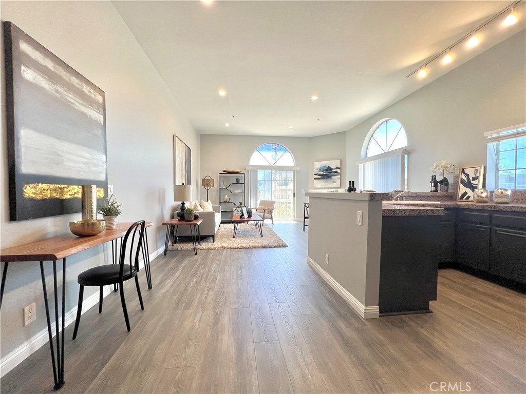 REDUCED!! Adorable penthouse end unit shares only 1 wall offering privacy galore. High ceilings make this space feel luxurious, open and bright with lots of natural light. Views from the living room and kitchen offer peace and tranquility while the balcony off of the living room provides the option to spend time outside. An open work space, office or alternate bedroom greet you upon entering which has a beautifully designed marble bathroom. Step up into the dining area, kitchen and living room for the unbarred social setting where you can cook and entertain. Kitchen has newer Kitchen Aide stove, microwave, dishwasher and refrigerator. Upstairs in the loft-style master suite, there is an additional outpouring of natural light, closet and full bathroom. Stackable washer & dryer included in sale. Tandem 2-car parking in underground parking. Trendy neighborhood facilitates close proximity to freeways, restaurants and retail. Don't futz around, bring your buyers and scoop up a lovely condo in a highly desired neighborhood that could be either a beautiful place to call home or an investment to add to a real estate portfolio.