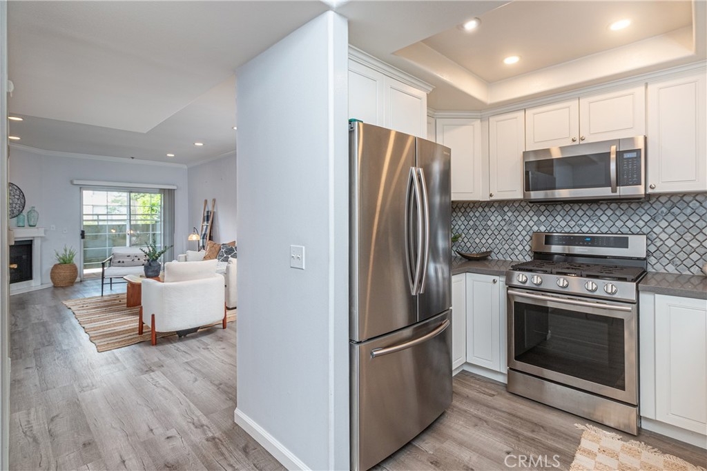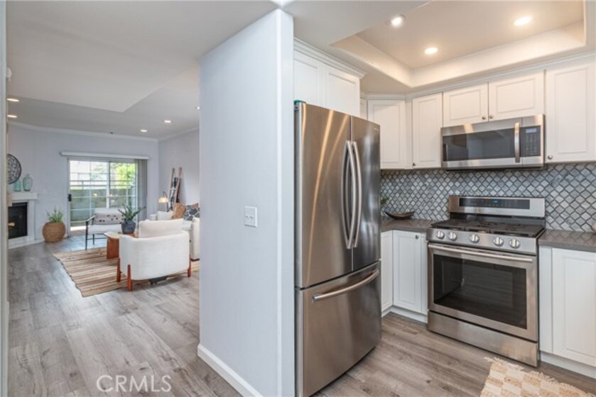 Tucked into one of Studio City’s most beloved neighborhood pockets, known for its charm, tree lined streets, and easy access to local cafes, boutiques, restaurants, and everyday conveniences, 11485 Moorpark Street, Unit 15 offers the perfect blend of relaxed California living, walkable neighborhood energy, and the comfort of a thoughtfully designed two story home. Inside, the main level opens to a warm and inviting living room with a classic fireplace, recessed lighting, wide plank style flooring, and a natural flow that extends toward the outdoor balcony. It is the kind of space that feels easy to live in, whether you are unwinding at the end of the day, hosting a casual dinner, or enjoying a quiet morning before heading out into the neighborhood. The kitchen has been refreshed with crisp white cabinetry, stainless steel appliances, a decorative tile backsplash, and generous counter space, creating a clean and functional setting for everyday cooking and entertaining. A dedicated dining area adds flexibility to the main level, keeping the layout open and comfortable while still giving each space its own purpose. Upstairs, the bedrooms offer a peaceful retreat from the pace of the city, with soft carpeting, natural light, and a calm, neutral feel. The bathroom features a stylish vanity, tub and shower with updated tile surround, and a fresh palette that feels timeless and move in ready. In unit laundry adds everyday convenience, while subterranean parking provides the practical ease every Studio City buyer appreciates. The community amenities further enhance the lifestyle, with a sparkling pool, fitness room, and secure lower level parking. Whether starting the day with a quick workout, spending a warm afternoon poolside, or heading out for dinner nearby, the building offers comfort, convenience, and that effortless Southern California rhythm. Just moments from Tujunga Village, Ventura Boulevard, Woodbridge Park, local shops, chic boutiques, restaurants, studios, and neighborhood favorites, this location places you close to the best of Studio City living. Think morning coffee runs, weekend brunch, evening strolls, destination dining, and the kind of walkable local charm that makes everyday life feel a little more elevated. With its two story layout, refreshed interiors, desirable amenities, and prime Studio City setting, Unit 15 is a stylish and comfortable place to call home in a neighborhood that continues to define California lifestyle.