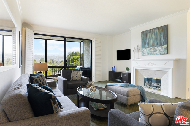 Tastefully appointed Top floor rear Corner unit condo with Mountain views. Open floor plan features smooth High ceilings, Crown molding, Custom Plantation shutters, Mantled gas fireplace & inside laundry. Formal entry leads to a Spacious living room opening to a large screened in balcony. Dining room includes a walk-in pantry. White-tiled Cooks kitchen has cozy breakfast area. Dual Walk-in closets in the Sunny master suite. En suite second bedroom. Freshly painted throughout. Keyed-access building with 2-car parking, remote-controlled garage. Close to Tujunga Village restaurants & shops. Quiet unit, Won't Last.
