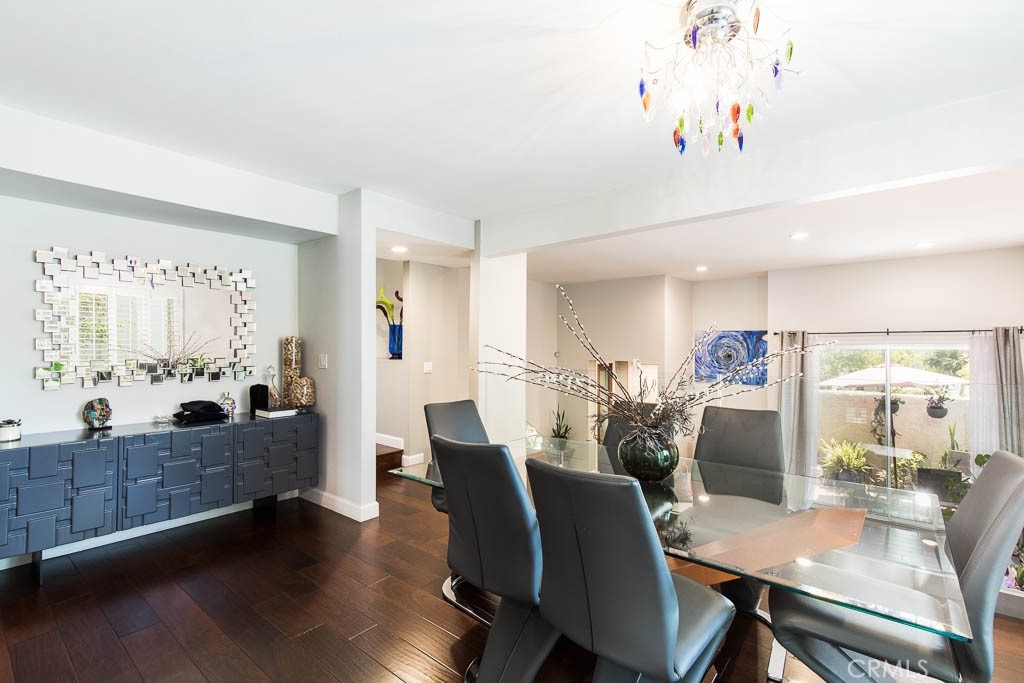 Studio village town home! Rarely do these large units come on the market. Convertible den could easily be converted back to 4th bedroom. Living room has high ceiling with wood burning fireplace & sliding glass doors opening to private bricked patio. Formal dining room overlooks living room which gives a wonderful "open" feel for entertaining. Kitchen with breakfast nook is off dining room and open to convertible den. Powder bath can be converted to a 3/4 bath and completes lower level. Upstairs there is a wonderful master suite with customized his and hers walk-in closets and private bath with double sinks. Two other bedrooms share a bathroom. Newer paint and hardwood floors throughout. Front windows are all double paned and most windows have plantation shutters. Private double attached garage with storage & laundry area completes this wonderful home. Complex has six pools, five spas and two tennis courts plus manicured lawns and areas of greenbelt throughout. It is within easy reach of Tujunga Village and Ventura Blvd. Close to Fryman Canyon for hiking, studios, and in Carpenter Elementary school district.