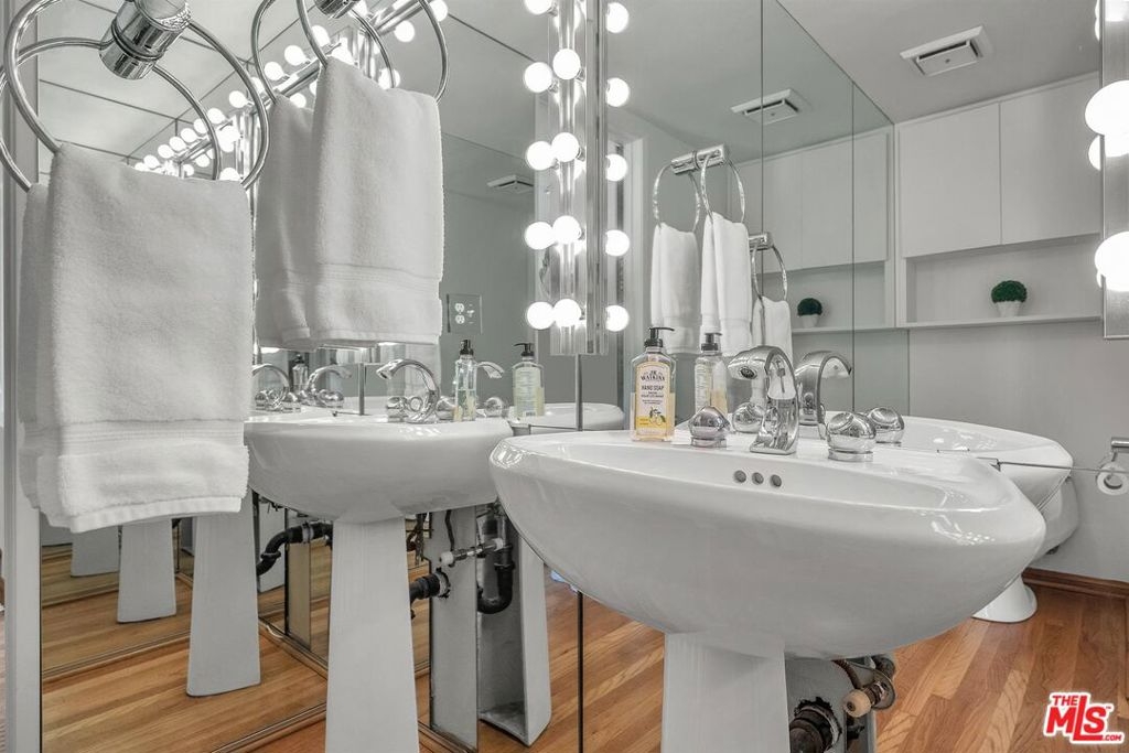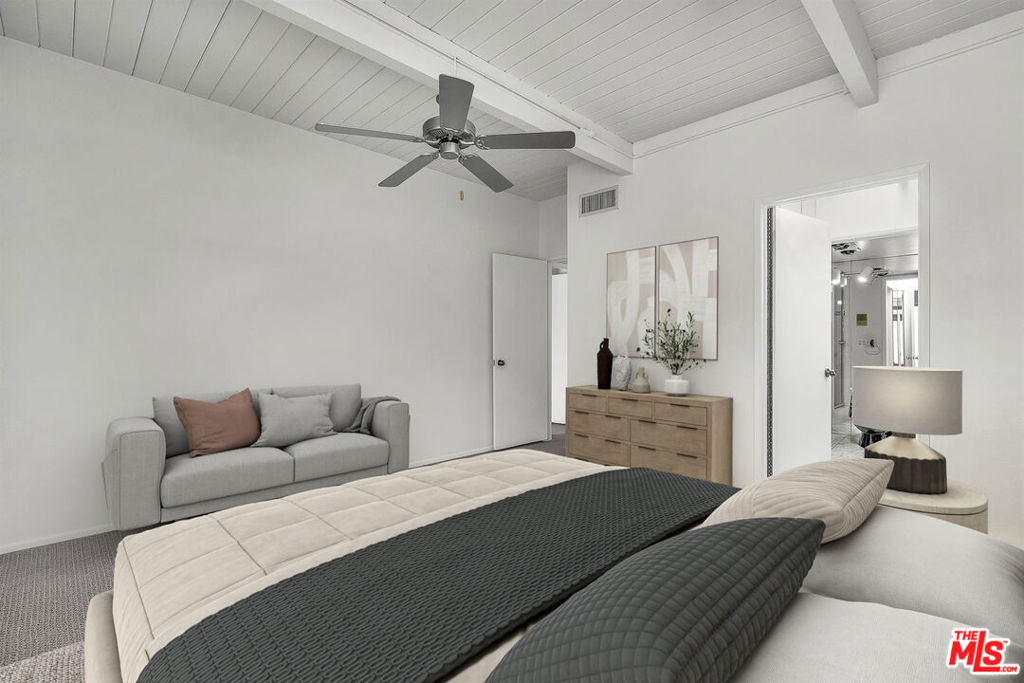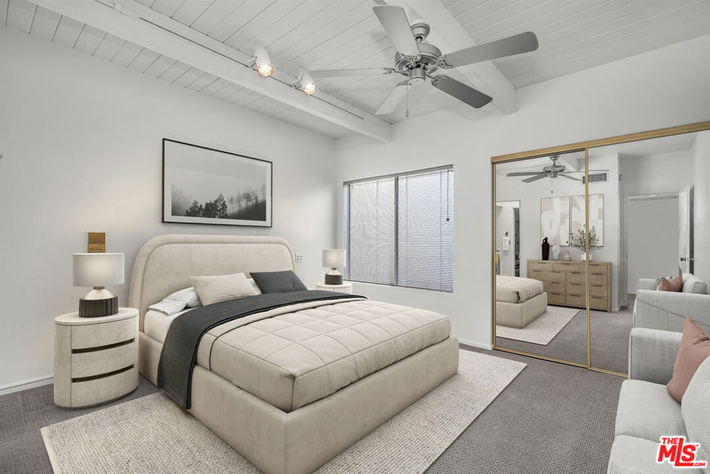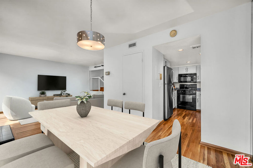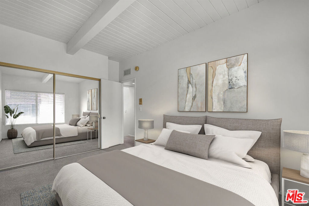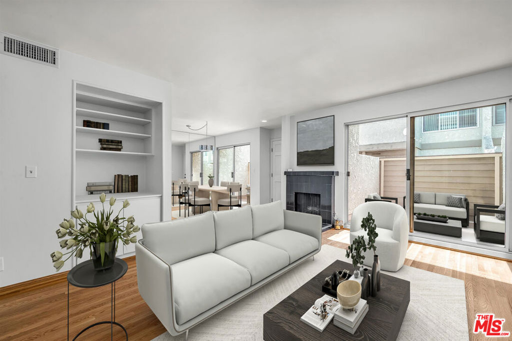 Discover a hidden gem in the prestigious Studio Village complex of Studio City, waiting for your personal touches. This townhome presents a rare opportunity for those seeking a peaceful retreat within a community renowned for its resort-style living. Step inside this newly painted interior to discover a bright and inviting living area, enhanced by southern exposure that floods the space with natural light. The inviting living room, features hardwood floors throughout the first level (recently refreshed), a charming fireplace (decorative), and seamless access to a private patio. The kitchen offers generous storage and flows effortlessly into the dining area, which opens to a second secluded patio, perfect for alfresco dining. The main level also includes a convenient powder room and an in-closet stackable washer/dryer, ensuring practicality and comfort. Ascend to the upper level, where the expansive primary suite awaits, boasting a stunning beamed ceiling, a large secondary closet, and a ceiling fan for optimal comfort. The spacious primary bathroom features a walk-in closet, a tub, a separate shower area, and a skylight, creating a spa-like experience at home. The second bedroom, also on this floor, includes a sizable closet for ample storage. Residents enjoy secure subterranean parking with two exclusive side-by-side spots. The HOA fee encompasses essential services such as basic cable TV, internet, water, security patrol, and earthquake insurance. Indulge in the complex's six magnificent pools, five soothing spas, two tennis courts, and beautifully landscaped grounds. Situated close to Studio City's vibrant shopping on Ventura Boulevard and close by Tujunga Village, world class dining, the popular Farmers Market, hiking in Fryman Canyon, plus easy access to DTLA, Hollywood, Westside; this home provides exclusivity and convenience. (Photos are virtually staged)