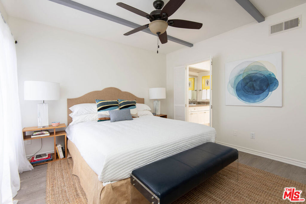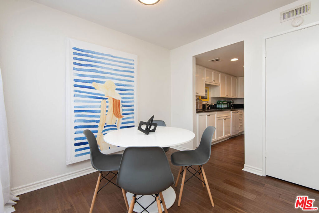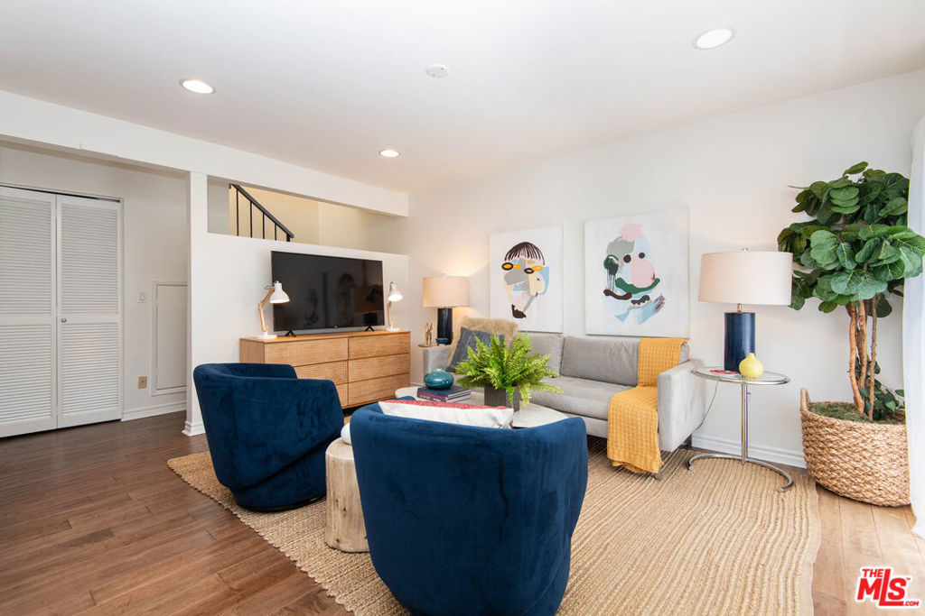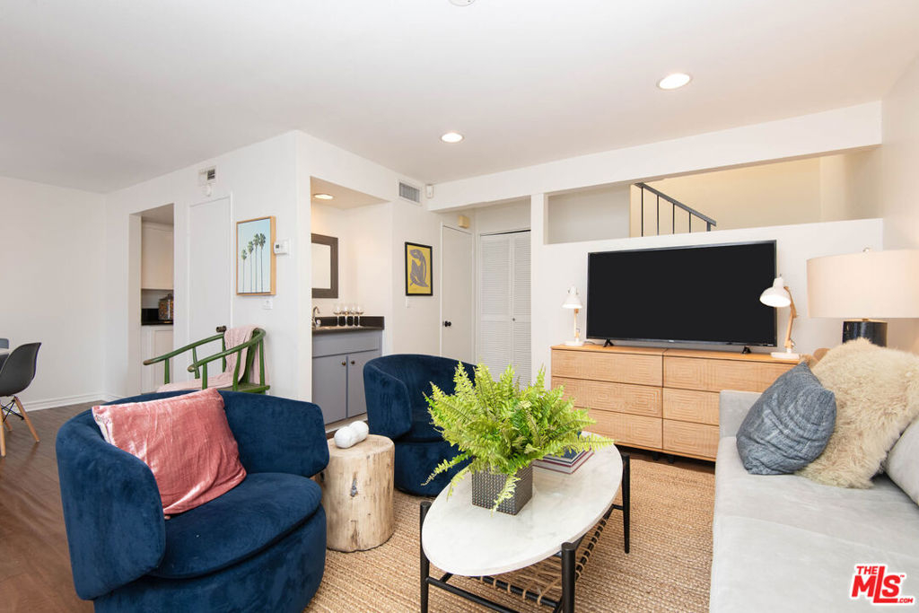 Fantastic starter home in Studio Village, one of Studio City's premier complexes. This interior unit with views of the Hollywood Hills features beautiful hardwood floors throughout. This charming townhome offers resort style living in an elegant updated setting. The living room features beautiful hardwood floors with a fire place and opens to a private patio area. The formal dining over-looks the living room and is adjacent to the kitchen with a cozy eat-in area and open family room. The upper level features two bedroom suites and ample storage. In addition, all the windows have plantation shutters as well as in-unit laundry. The unit also features two side by side parking spots in the gated underground garage. The HOA currently covers basic cable TV, Internet, water, security patrol as well as earthquake insurance. The complex features 6 beautiful pools; 5 delectable spas; 2 tennis courts and acres of beautiful landscaped grounds. Close to all the best Studio City has to offer!