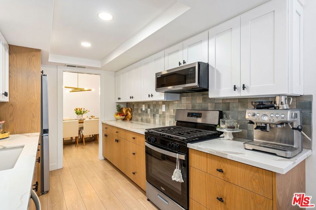 Welcome to the remodeled condo in the heart of Studio City, an exquisite 2-bedroom, 2-bathroom unit that redefines urban living with sophistication and style. Spanning a generous 1,325 square feet, this one-level residence has an open-floor plan with ample natural light, creating an inviting and versatile space, ideal for both relaxation and social gatherings. The chef's kitchen features sleek stainless steel appliances, quartz countertops, and ample preparation space to inspire your inner gourmet. The spacious primary bedroom offers a serene retreat with an ensuite bath and a generous walk-in closet, while the versatile second bedroom can easily be transformed into a stylish home office to suit your lifestyle. Enjoy the convenience of in-unit laundry, ensuring that modern living is as efficient as it is enjoyable. Unwind on your private balcony, a perfect spot for morning coffee or evening relaxation amid the treetops. Beyond your door lies an array of luxurious amenities, including a sparkling association pool and secure parking. On weekends, take advantage of the proximity to Studio City's famous Sunday farmers market, indulging in fresh produce and artisanal delights. *A few interior walls of art are virtually staged. Fireplaces are considered decorative. Buyers should confirm all MLS data, including permits, HOA info, property use, bedroom and bathroom counts, square footage, school information, and enrollment availability. Offers will be reviewed as they come in.