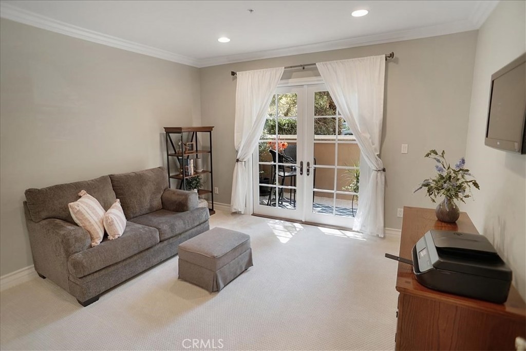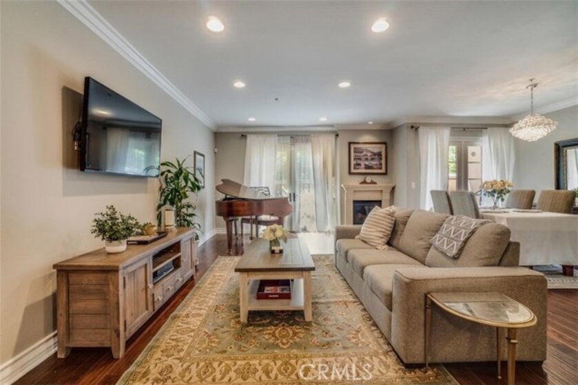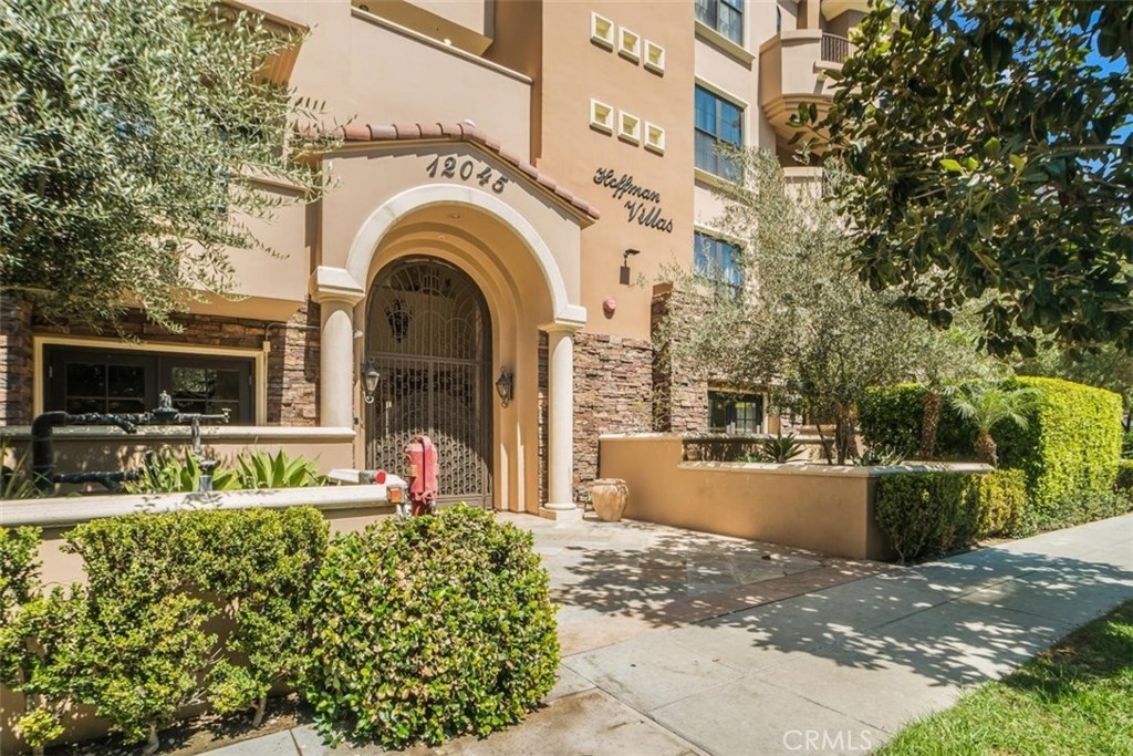The gorgeous Hoffman Villas are nestled on a beautiful tree-lined street steps away from the incredible restaurants & boutiques of Ventura Boulevard, the popular Studio City Farmer’s Market which is held every Sunday and in the coveted Carpenter School District. This luxurious 3 bedroom, 2 ½ bathroom condo is highlighted by its open concept entertainers’ floorplan with multiple sets of French doors that welcome in the outdoors. The spacious living and dining areas include a high ceiling, beautifully mantled fireplace and two sets of French doors which open to the patio. The gourmet kitchen includes stylish dark stain cabinets, granite countertop with custom backsplash and stainless steel appliances. The two guest bedrooms are generously sized and include roomy closets with custom shelving systems. Both are serviced by the conveniently located full guest bathroom. The relaxing master suite includes French doors which open to the patio, a large walk in closet and a luxurious master bathroom with a spacious dual vanity, shower and separate tub. Additional amenities include hardwood flooring, recessed lighting, crown molding, central air & heat and a separate laundry closet. HOA dues are $488 per month and include access to a private gym, meeting space and subterranean parking with two tandem parking spaces and additional guest parking.