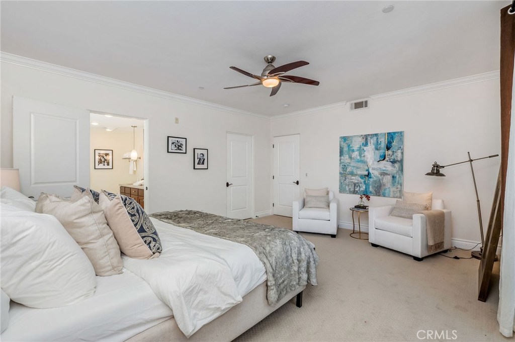 Private, bright and recently updated 3 bedroom condo in Carpenter School District and the heart of Studio City; moments from the famed Farmer’s Market, Trader Joes and Ventura Blvd's trendy restaurants and shops. This spacious condo features elegant finishes and high end appliances appropriate for this Luxury Studio City complex. Arched entry leads to an open layout with an Entertainer's Kitchen overlooking the dining room, living room and the large double-door patio with its relaxing lush green canopy of trees. Master suite offers an ensuite bathroom and large walk-in closet. Two additional bedrooms and bathrooms are all well sized with ample closet and storage space. Even the common space hallway, elevator, and parking are elegantly designed and meticulously maintained. Earthquake insurance is included in dues. This tree-lined street is waiting to welcome you home.