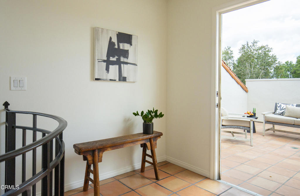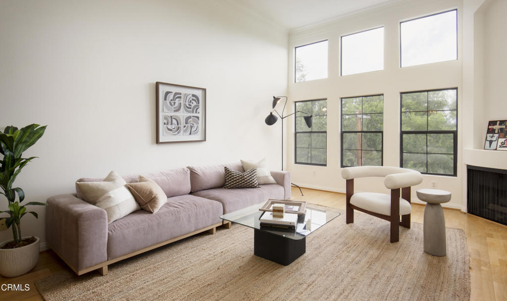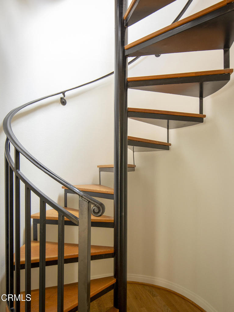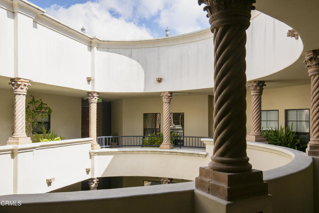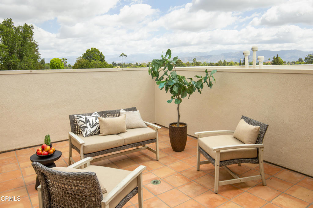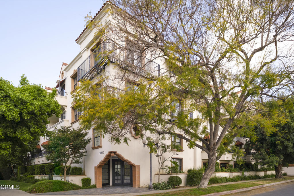 This charming Spanish-inspired building is centrally located in a prime area of Studio City. Centered around an atrium-style courtyard with a fountain set on a quiet street and surrounded by mature trees, this bright and airy old world inspired yet modernly appointed high-style top-floor 3 bedroom, 2 bath view property is situated adjacent to Beeman Park in a prime area near Ventura Boulevard's shops, restaurants, coffee houses, bars and cafes. Close to Erewhon, Equinox Gym, Studio City Library, and supermarkets, with easy access to major thoroughfares, freeways, private and public schools, and a beautifully landscaped section of the LA River Trail. The interior architecture features an abundance of modern curvilinear details including curved walls, and a stunning spiral staircase that leads to a private rooftop deck with views of the Valley, Hollywood Hills, the lights of Los Angeles, and the 4th of July fireworks! Unit 303 has high vaulted ceilings with walls of windows that reveal great views from the living room and 2 bedrooms. The unit has a spacious gourmet kitchen with stainless appliances, granite countertops and maple cabinetry. The kitchen has a new range/oven, new dishwasher, new garbage disposal and features an eat-in bar that opens to the living area area-perfect for entertaining. The unit features hardwood floors, a modern open floor plan, crown moldings, recessed lighting, LED lighting, a gas fireplace, abundant storage, walk-in closets an in-unit stacked washer/dryer, dual pane windows, and 2 tandem parking spaces in a security Garage. HOA includes earthquake insurance, property insurance for the full replacement value of the building, and Spectrum Cable with DVR and high-speed internet. A charming and well-appointed property on a quiet street yet in the heart of the best of what Studio City has to offer.