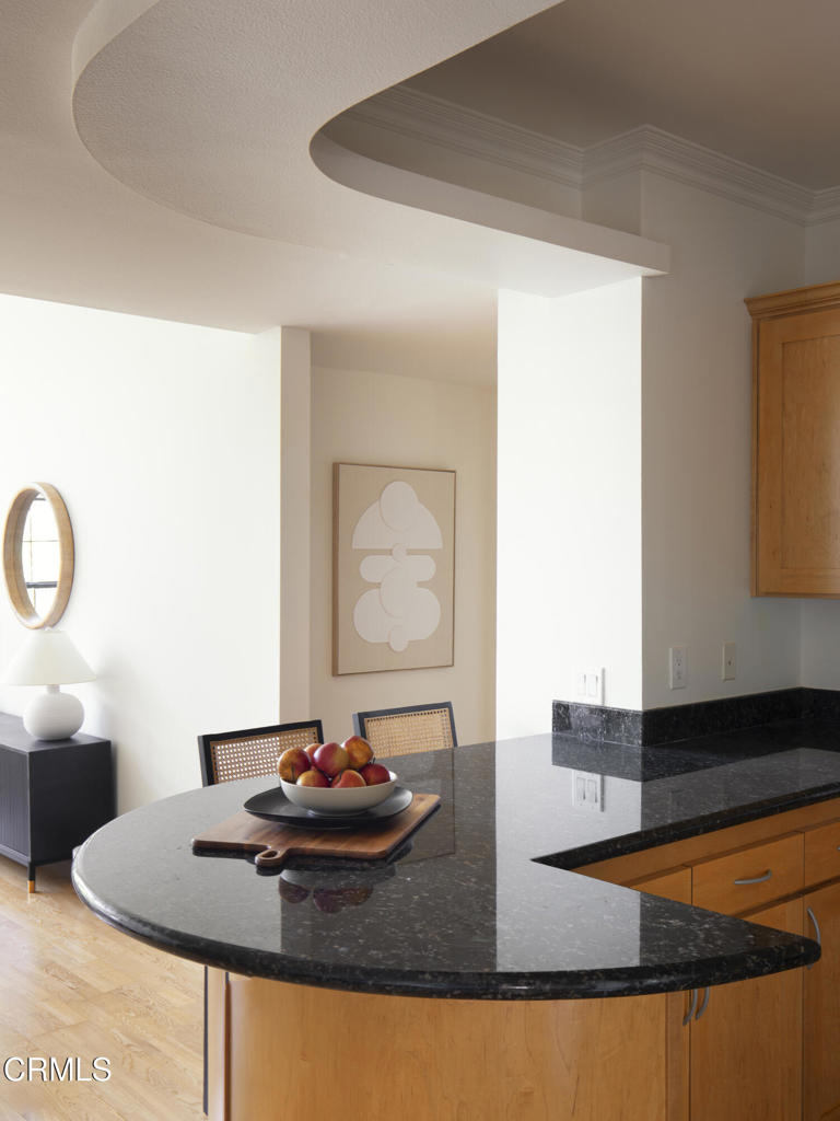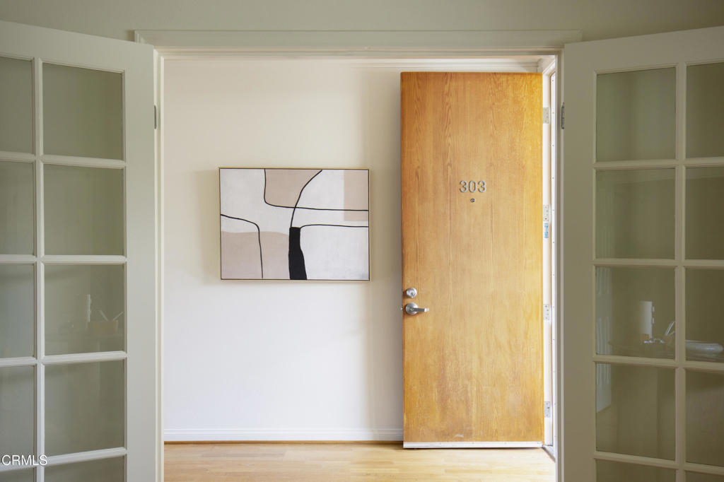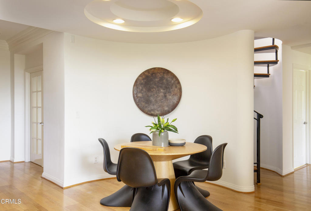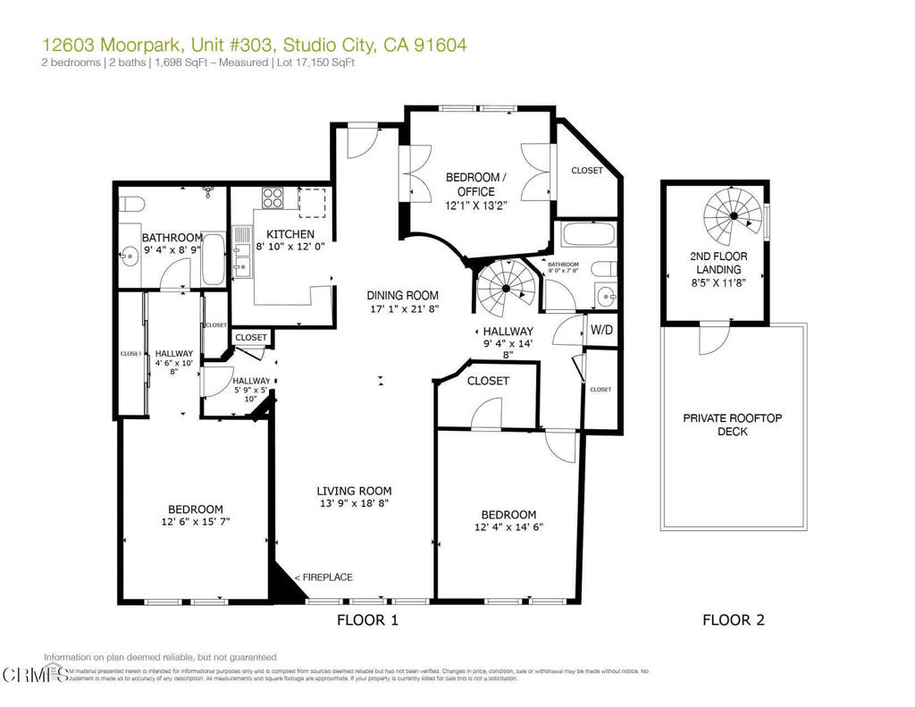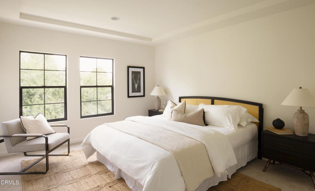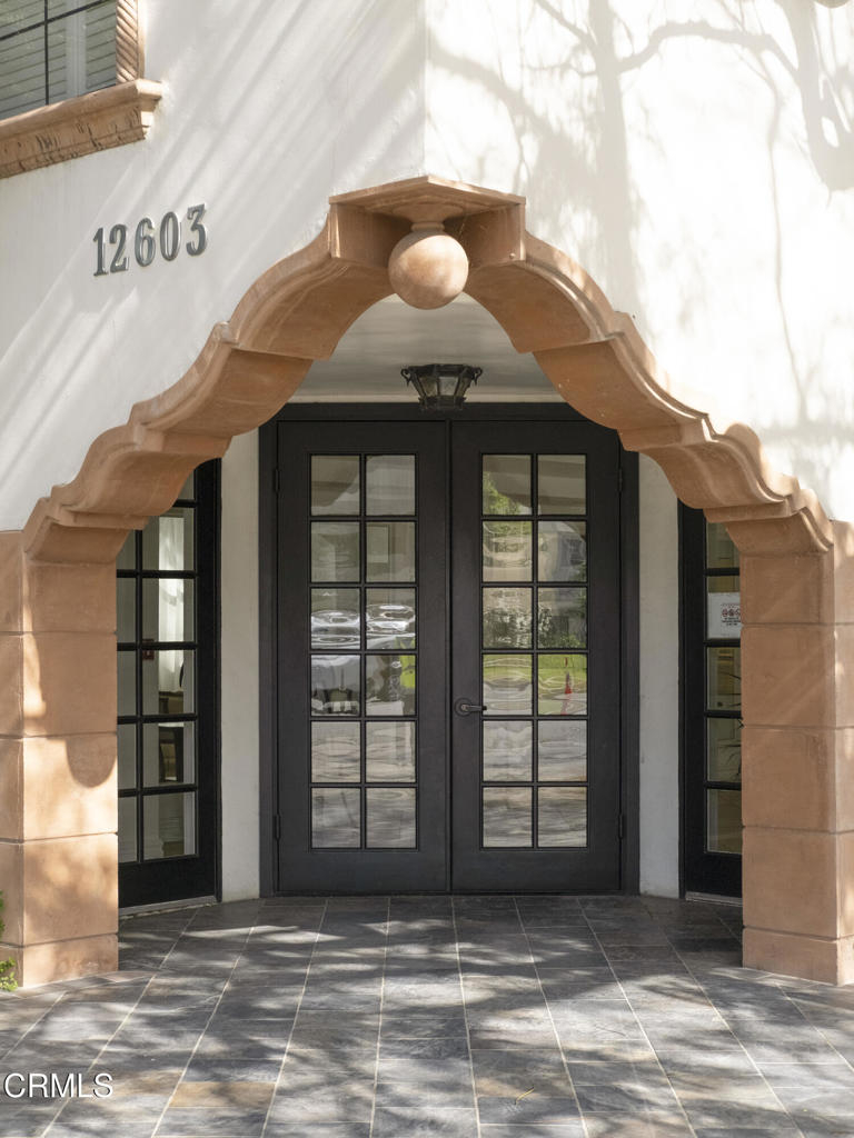 This charming Spanish-inspired building is centrally located in a prime area of Studio City. Centered around an atrium-style courtyard with a fountain set on a quiet street and surrounded by mature trees, this bright and airy old world inspired yet modernly appointed high-style top-floor 3 bedroom, 2 bath view property is situated adjacent to Beeman Park in a prime area near Ventura Boulevard's shops, restaurants, coffee houses, bars and cafes. Close to Erewhon, Equinox Gym, Studio City Library, and supermarkets, with easy access to major thoroughfares, freeways, private and public schools, and a beautifully landscaped section of the LA River Trail. The interior architecture features an abundance of modern curvilinear details including curved walls, and a stunning spiral staircase that leads to a private rooftop deck with views of the Valley, Hollywood Hills, the lights of Los Angeles, and the 4th of July fireworks! Unit 303 has high vaulted ceilings with walls of windows that reveal great views from the living room and 2 bedrooms. The unit has a spacious gourmet kitchen with stainless appliances, granite countertops and maple cabinetry. The kitchen has a new range/oven, new dishwasher, new garbage disposal and features an eat-in bar that opens to the living area area-perfect for entertaining. The unit features hardwood floors, a modern open floor plan, crown moldings, recessed lighting, LED lighting, a gas fireplace, abundant storage, walk-in closets an in-unit stacked washer/dryer, dual pane windows, and 2 tandem parking spaces in a security Garage. HOA includes earthquake insurance, property insurance for the full replacement value of the building, and Spectrum Cable with DVR and high-speed internet. A charming and well-appointed property on a quiet street yet in the heart of the best of what Studio City has to offer.