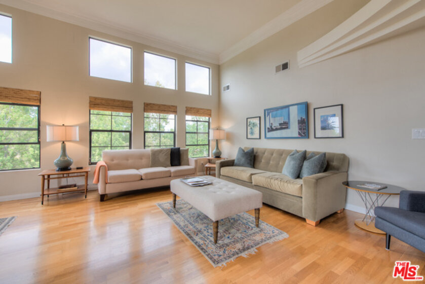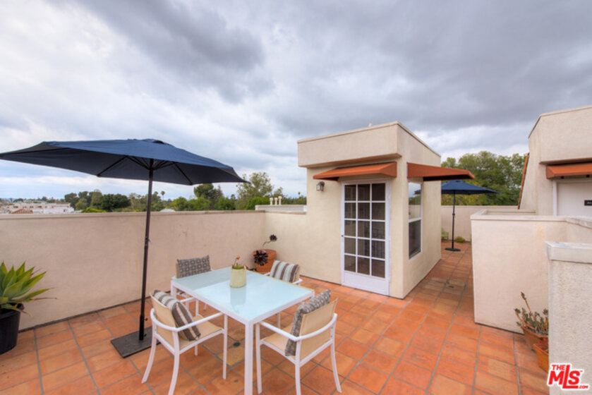Stunning PH one level condo in highly sought after Spanish style building adj to Beeman Park in Studio City. Quiet, back of building unit featuring 2 generous sized bdrms and 2 baths. Beautiful granite kitchen with stainless appliances, tile floors & breakfast bar. French doors open to lovely tiled deck next to living/dining room w/ space for al-fresco dining. Separate family room with fireplace. Gorgeous re-finished hardwood floors, large windows and soaring ceilings. Unique ceiling detail and lighting fixtures adorn this home and an abundance of natural light enhances the cheerful decor. Master bedroom features large walk-in closet, tub and shower enclosure w/ subway tile. Secondary bdrm and bath is located on opposite side of unit. Wrought iron staircase leads to bonus area and 2 private rooftop decks with stellar views of the Valley and the Hollywood hills. This amazing condo is move-in ready. Strong HOA includes EQ ins, Direct TV cable and water. Welcome home!
